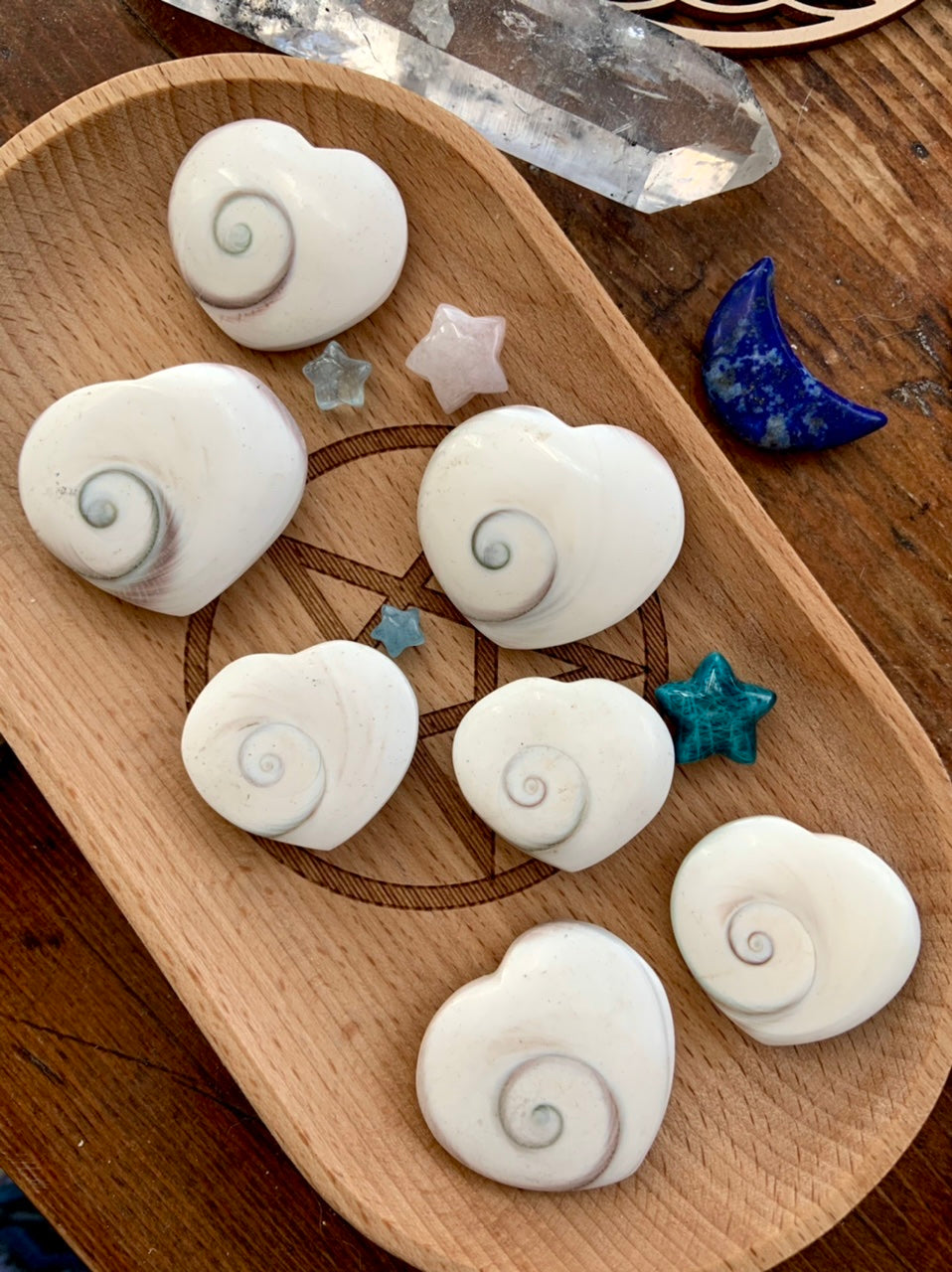 Also known as the Shiva Eye, these beautiful shells, enhance psychic abilities + can be used used to ward-off bad dreams + the Evil Eye. Shiva Shell gets its name from the Hindu God Shiva, who dances reality into existence.