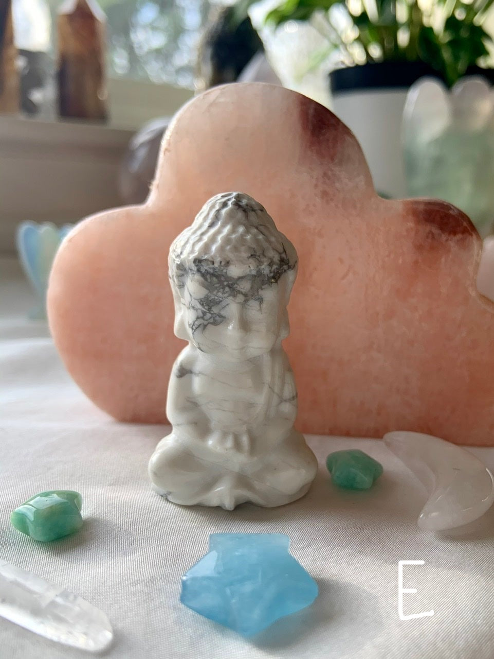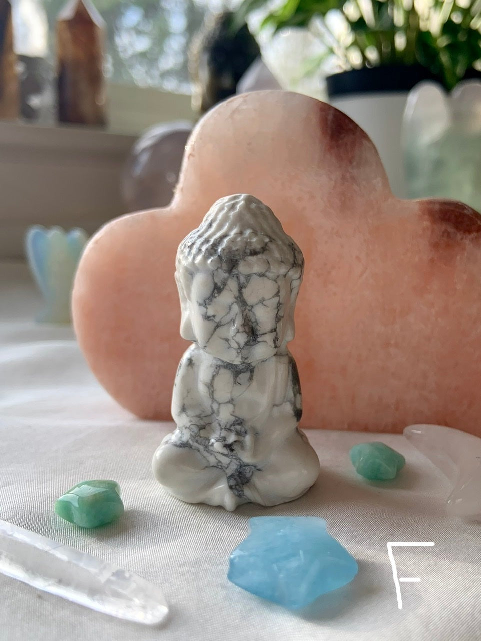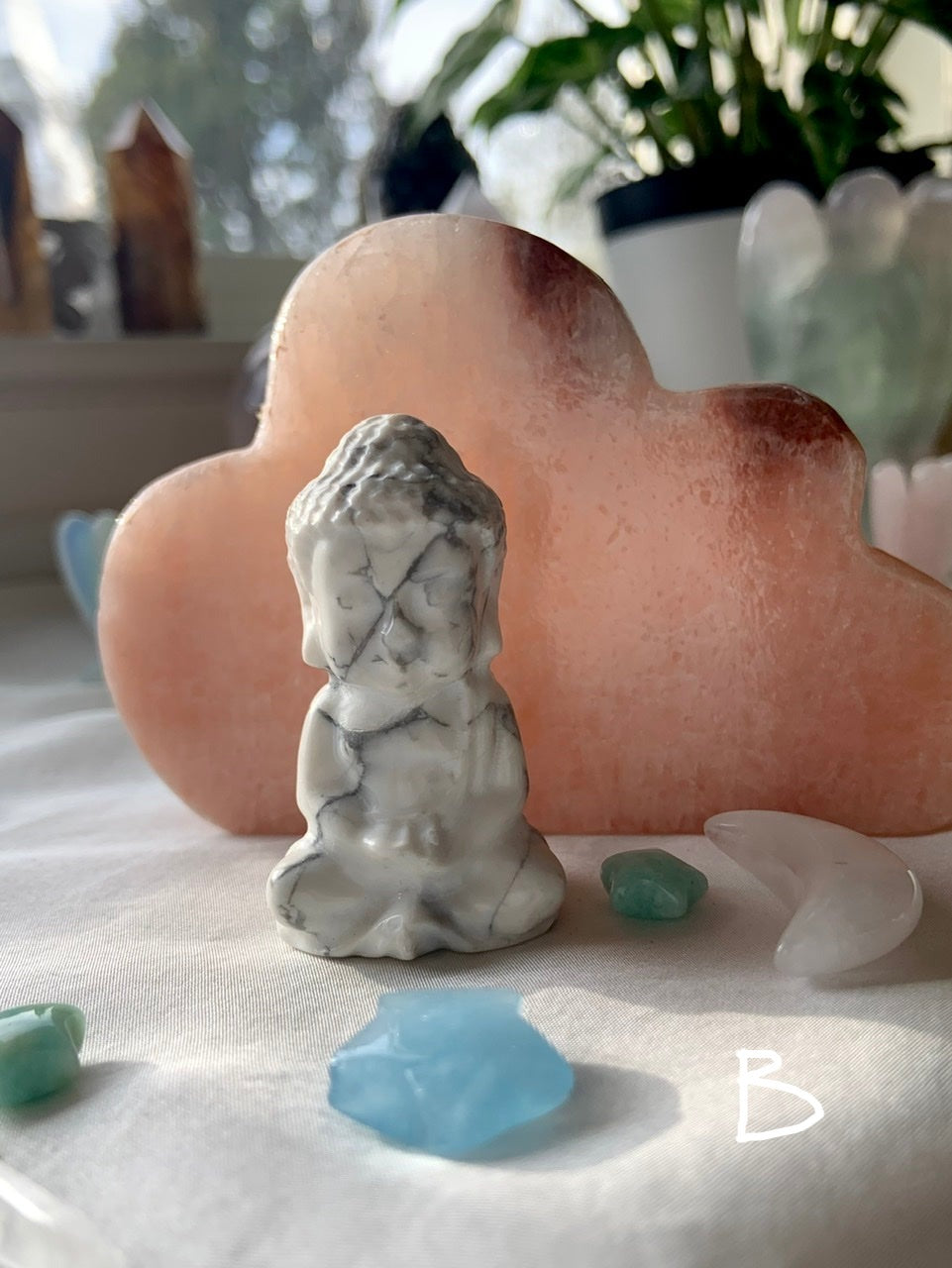 Howlite teaches peace. It's energy is calming + expansive. Howlite is a white stone with a dreamy, grounding energy making it an excellent bedroom crystal.