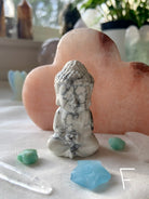 Howlite is a guardian stone, softly diffusing tension, anxiety, worry, anger, aggressive energy + negativity in the user as well as the environment.