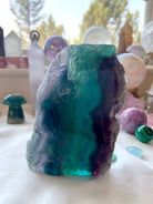 Teal, Blue + Purple Fluorite Slab with Natural Edge