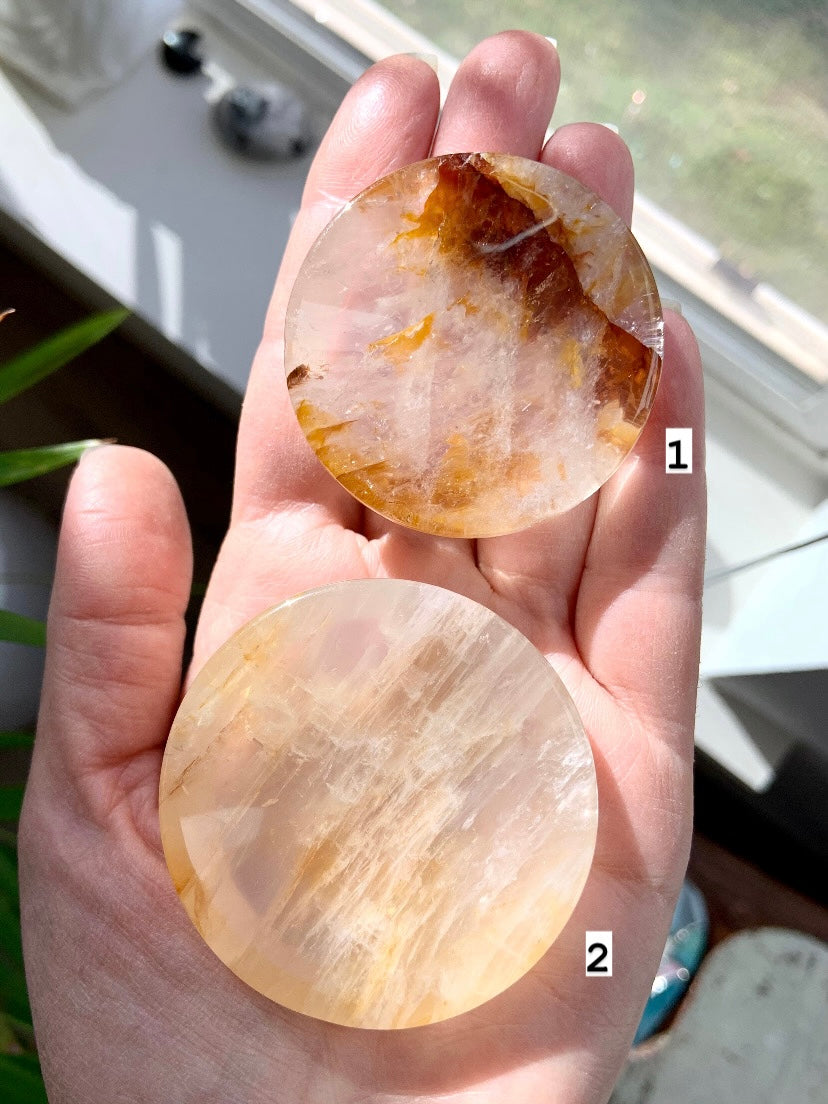 Golden Healer Quartz allows the golden light of Universal Life Force to flow into the body through the Crown Chakra, clearing blockages + imbalances, aligning all of the chakras. Golden Healer crystals are a powerful piece for your healing journey, sacred space, meditation room + manifestation rituals.