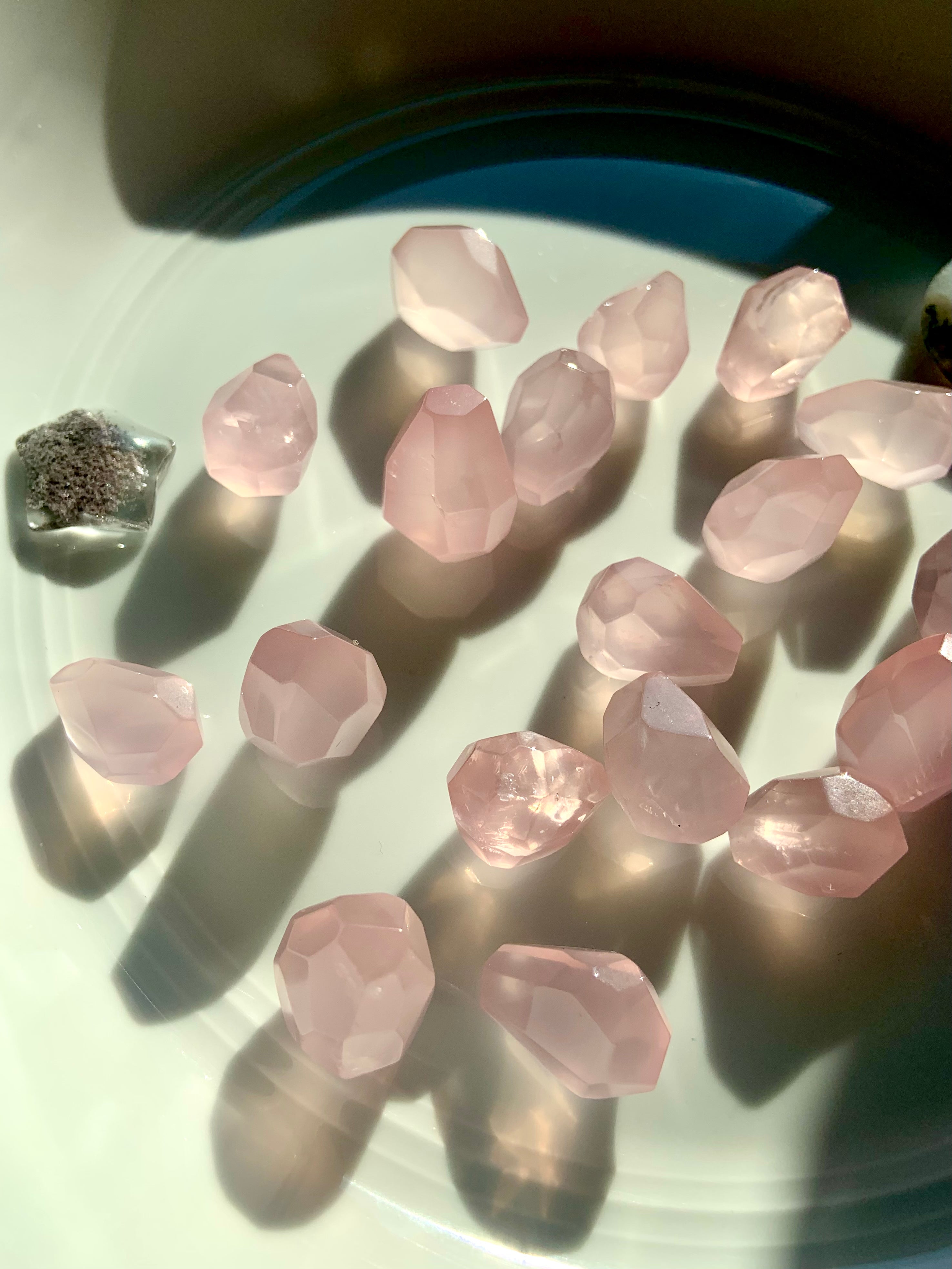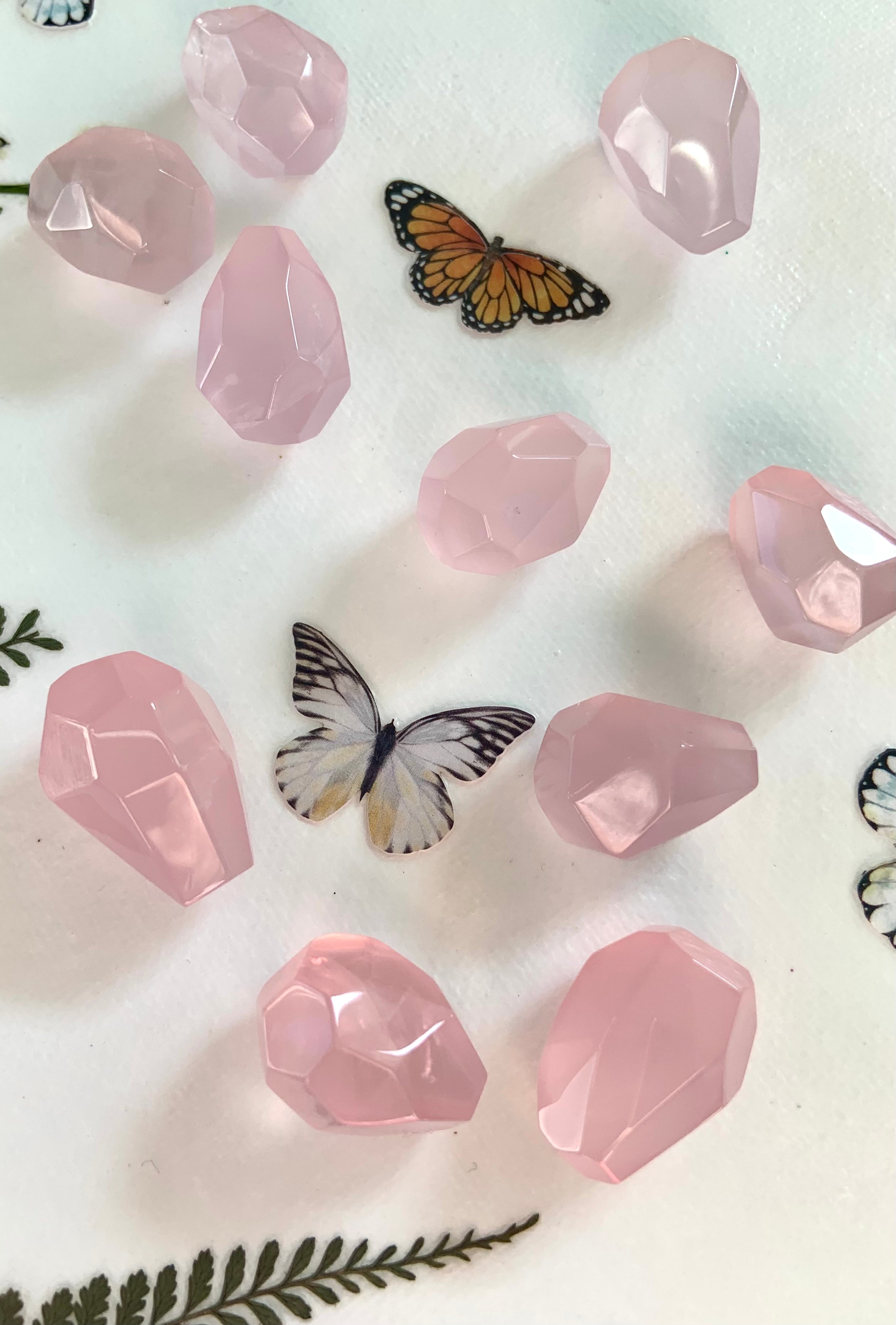 These mini Rose Quartz Freeform gems shapes are made from a luminous + gemmy pink crystal. This rare, high quality translucent Rose Quartz comes from Mozambique.