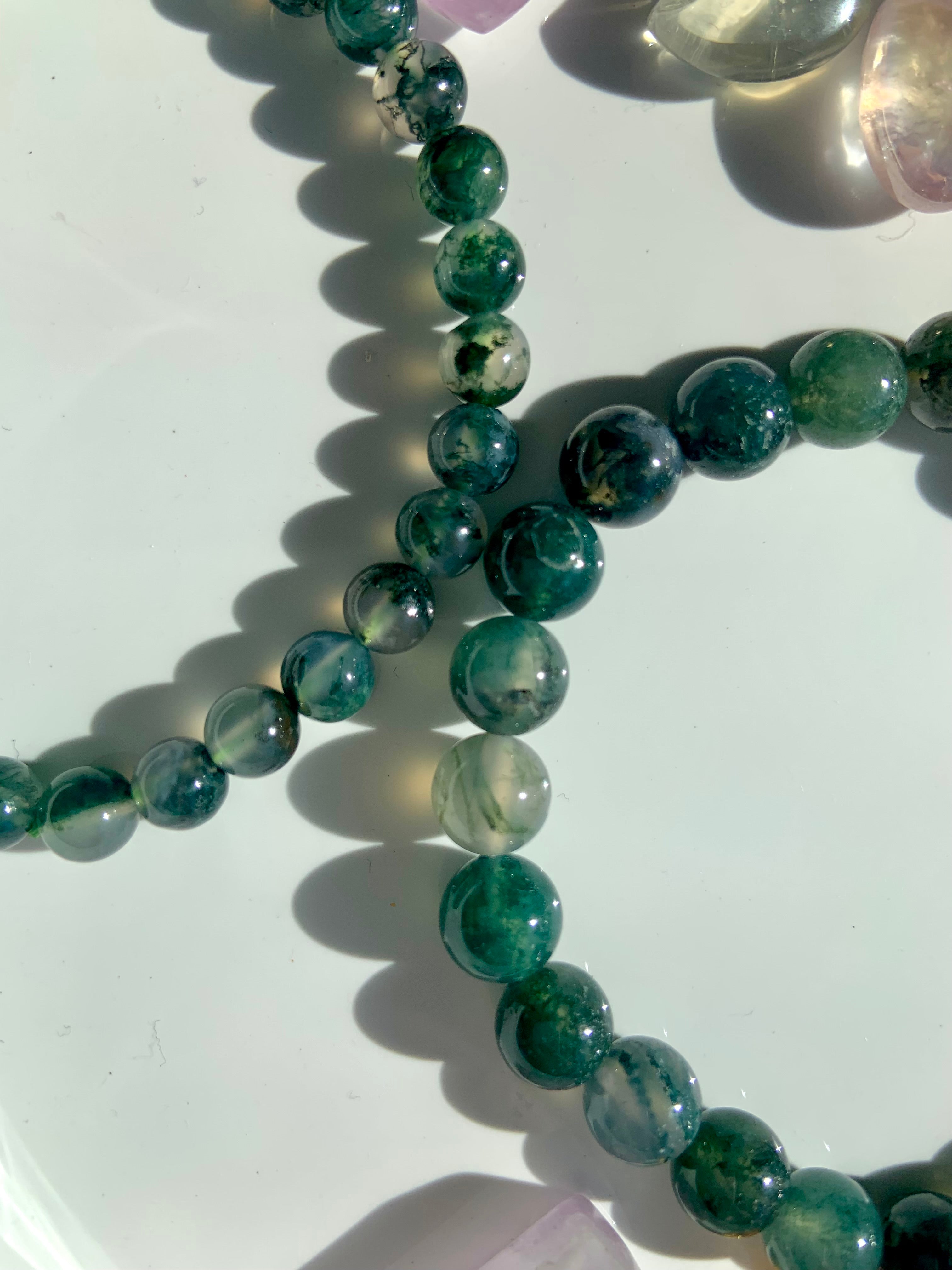 Moss Agate is a powerful Earth element stone that resonates with the Root + Heart Chakras.