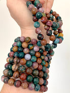 Ocean Jasper is also known as orbicular jasper due to it's swirling + orb-like inclusions of color. These round orbs associate with the circle + sphere, traditional symbols of wholeness.