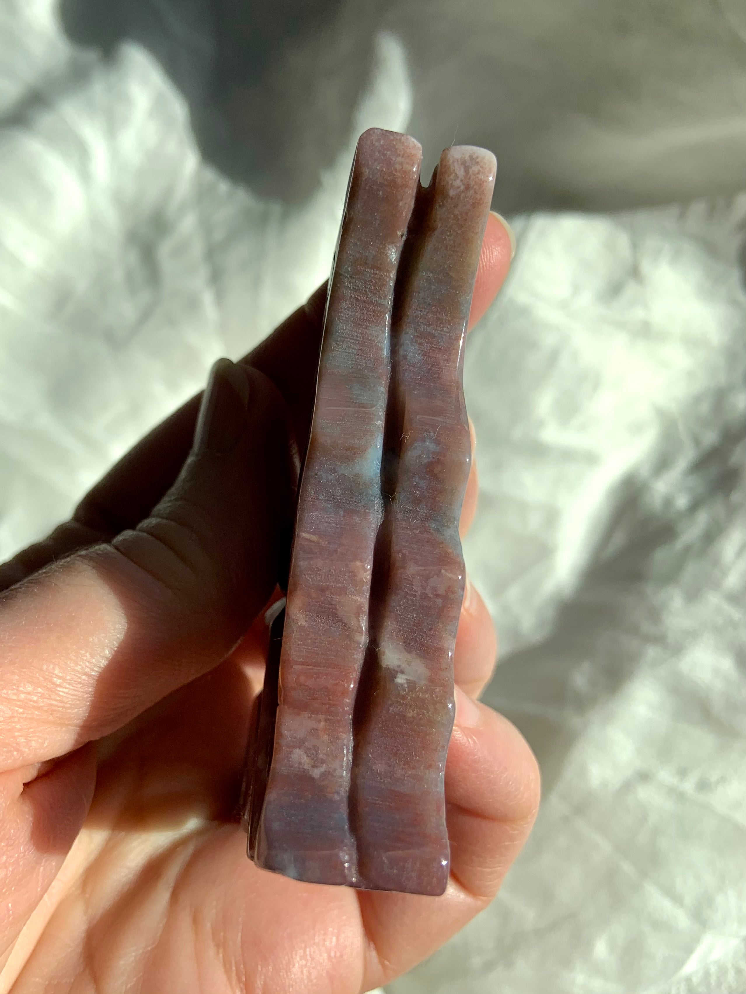 Ocean Jasper is grounding + centering, beneficial for channeling spiritual wisdom + gaining insight into one’s past lives. It's helpful in meditation, gently offering mental clarity + focus. Ocean Jasper is supportive in your yoga + breathwork practice as it's a stone of continuity, facilitating deep + even circular breathing.