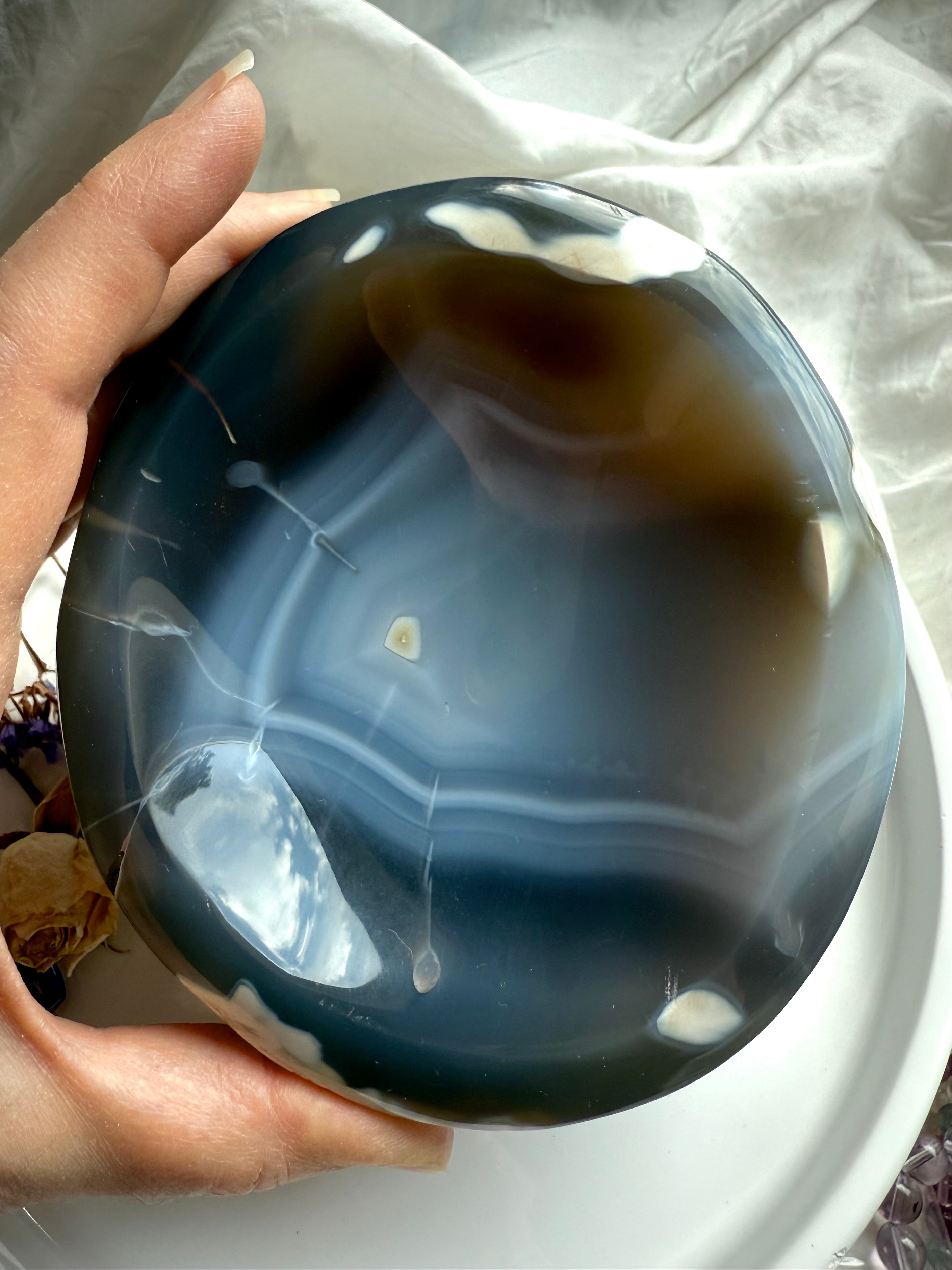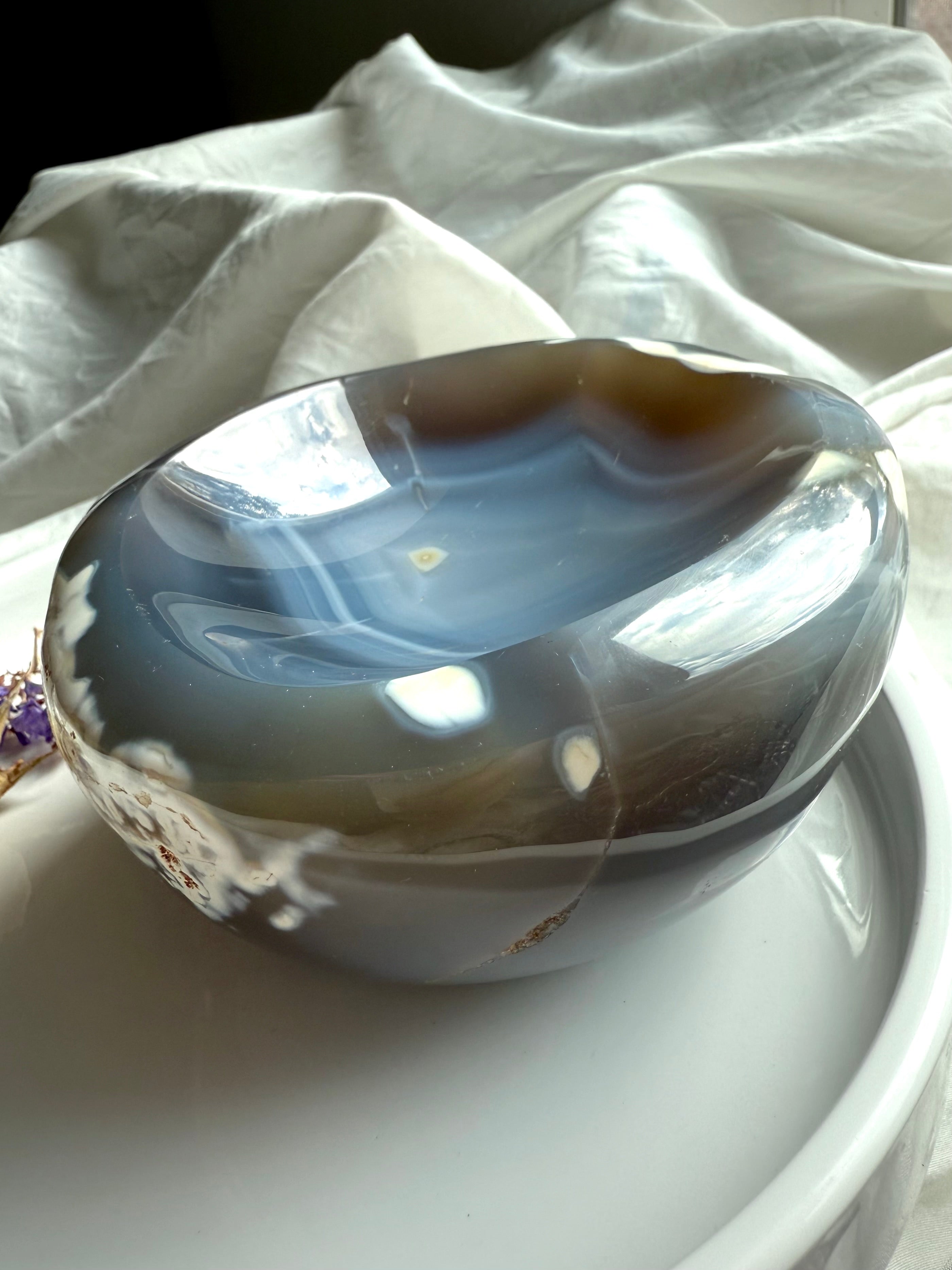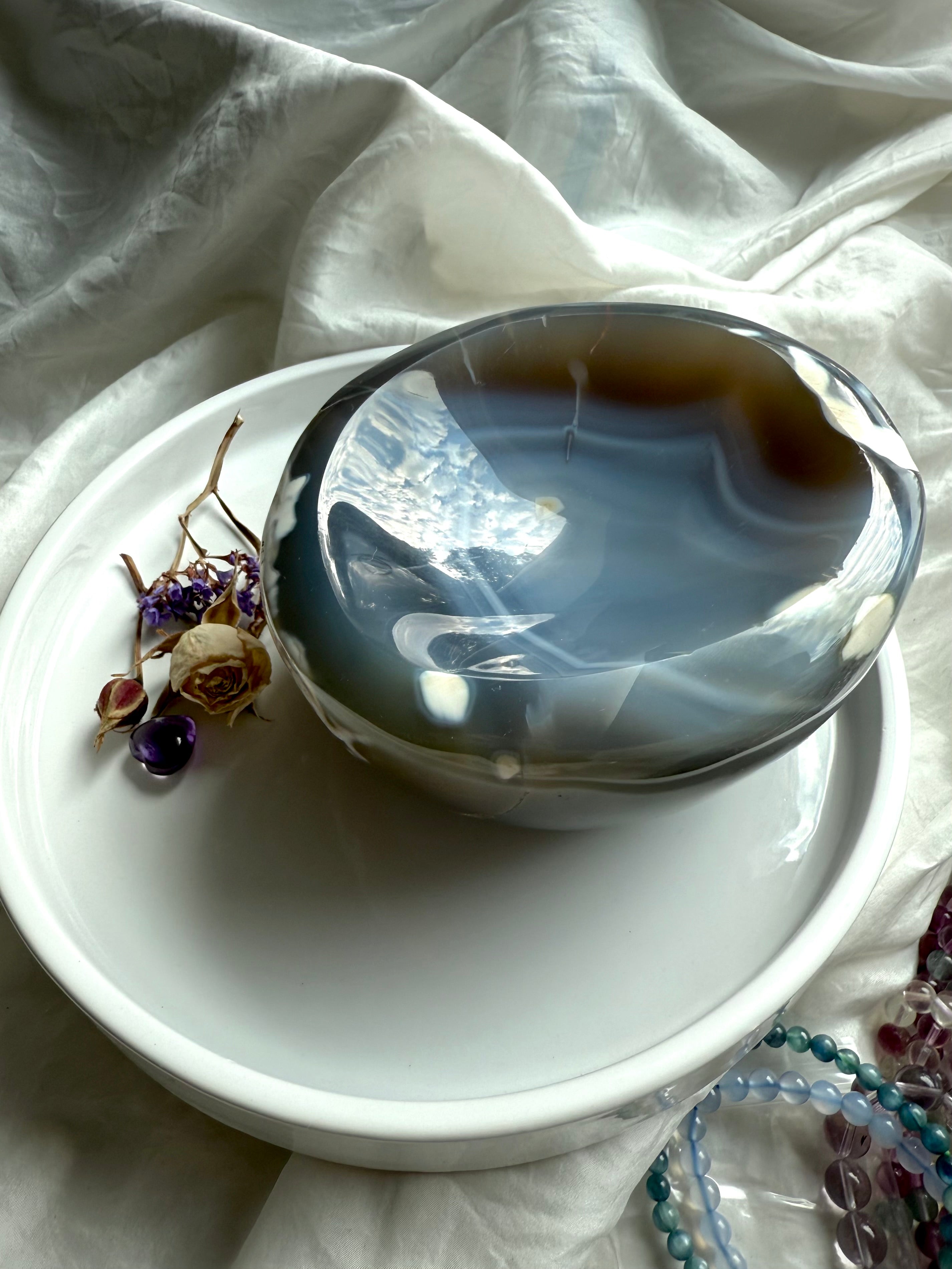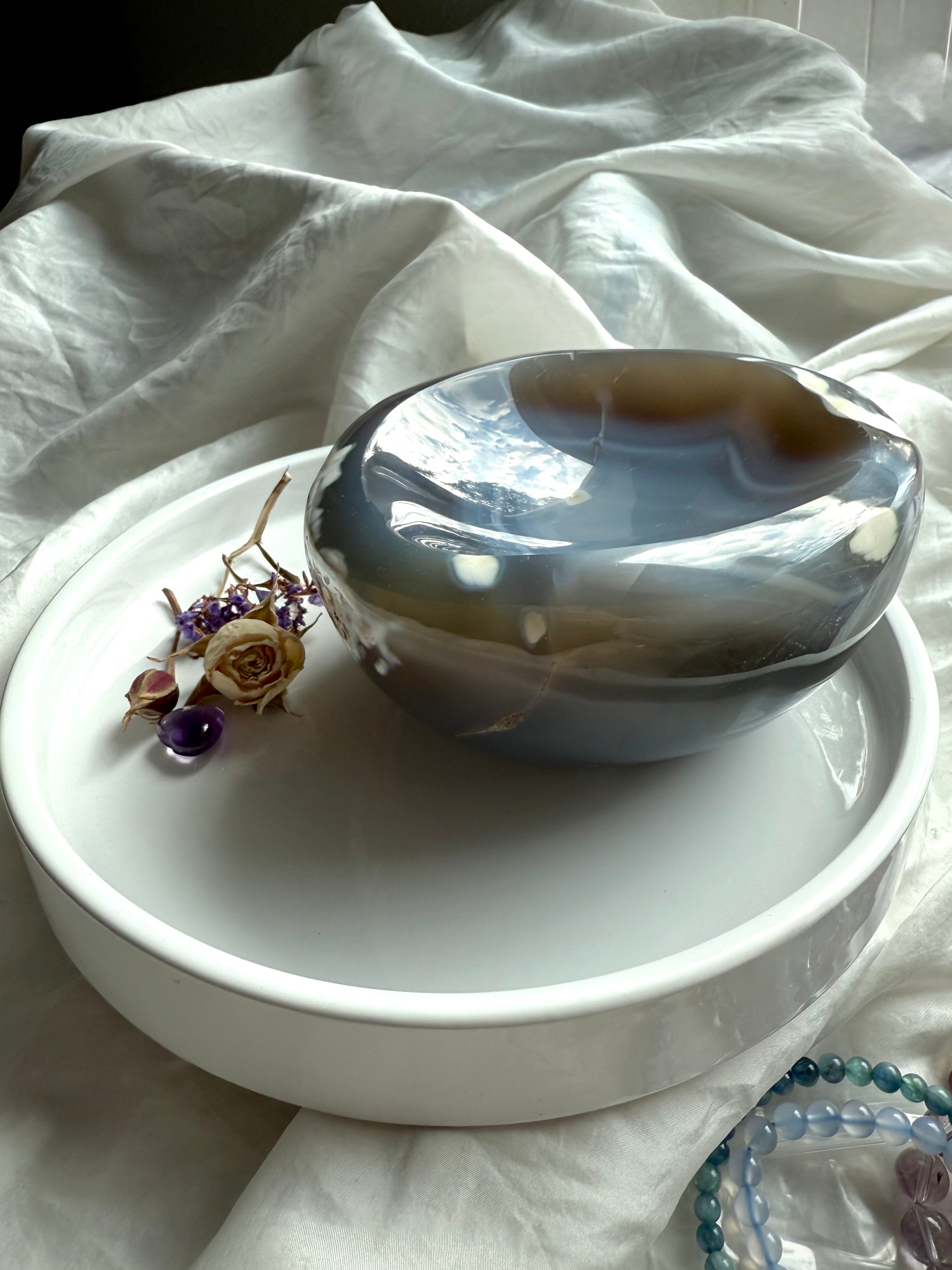 Orca Agate Crystal Bowl – Sacred Gemstone Offering Dish for Forgiveness & Healing