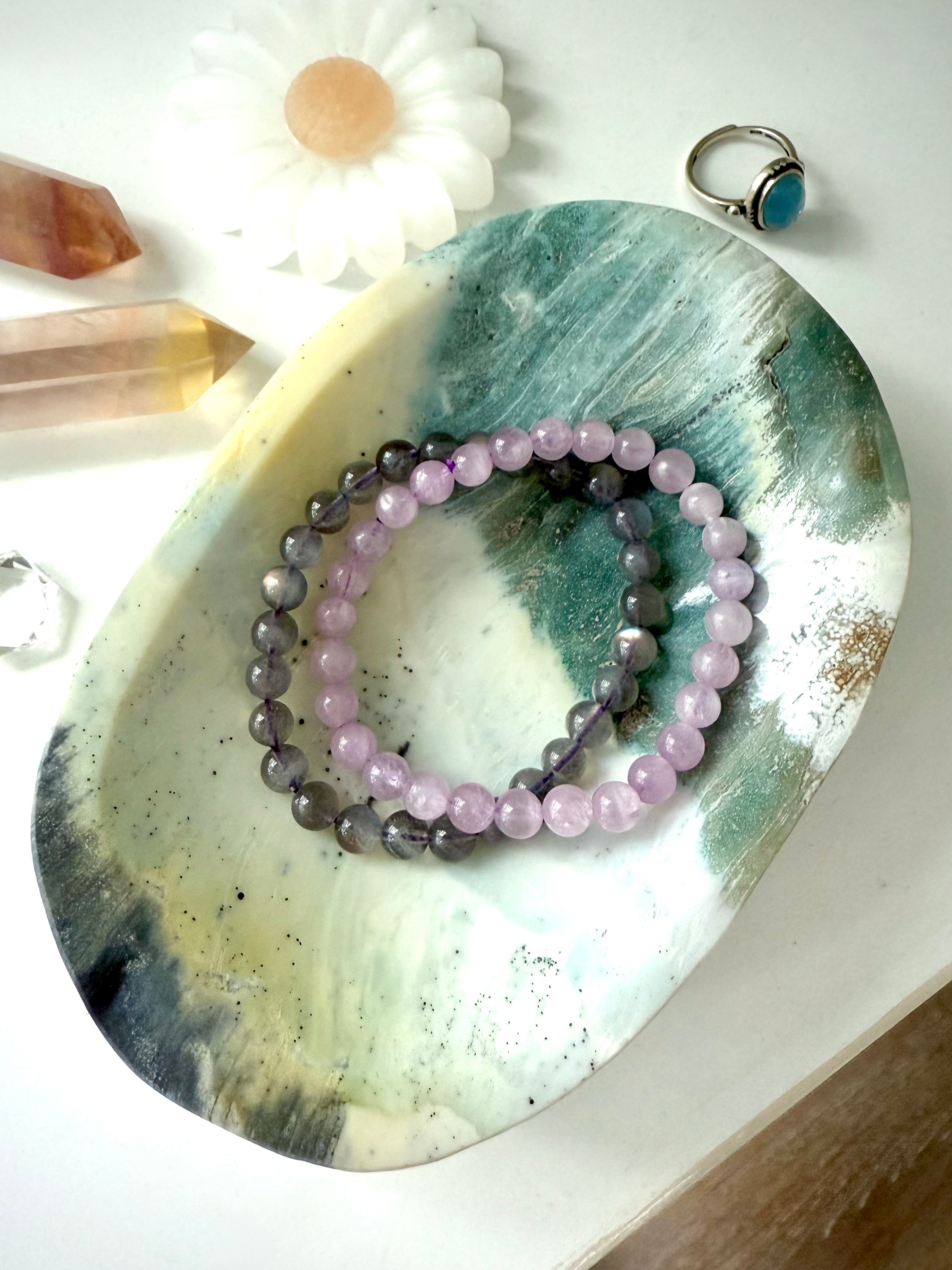 Ocean Jasper is highly beneficial for channeling spiritual wisdom + gaining insight into one’s past lives. It's helpful in meditation gently offering mental clarity + focus. This stone is grounding + centering. Ocean Jasper is beneficial in your yoga + breathwork practice as it's a stone of continuity, facilitating deep + even circular breathing.