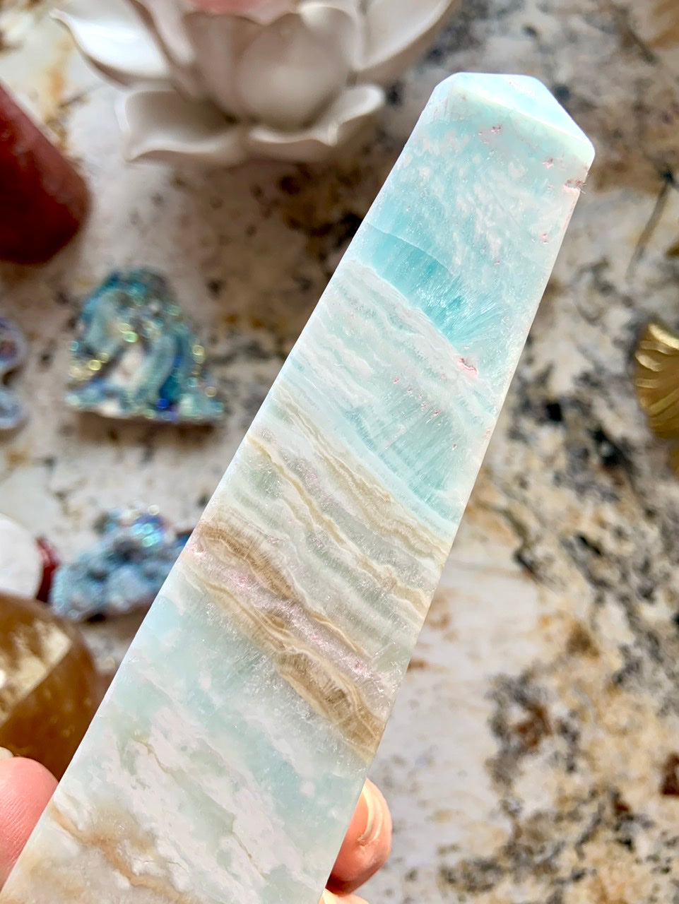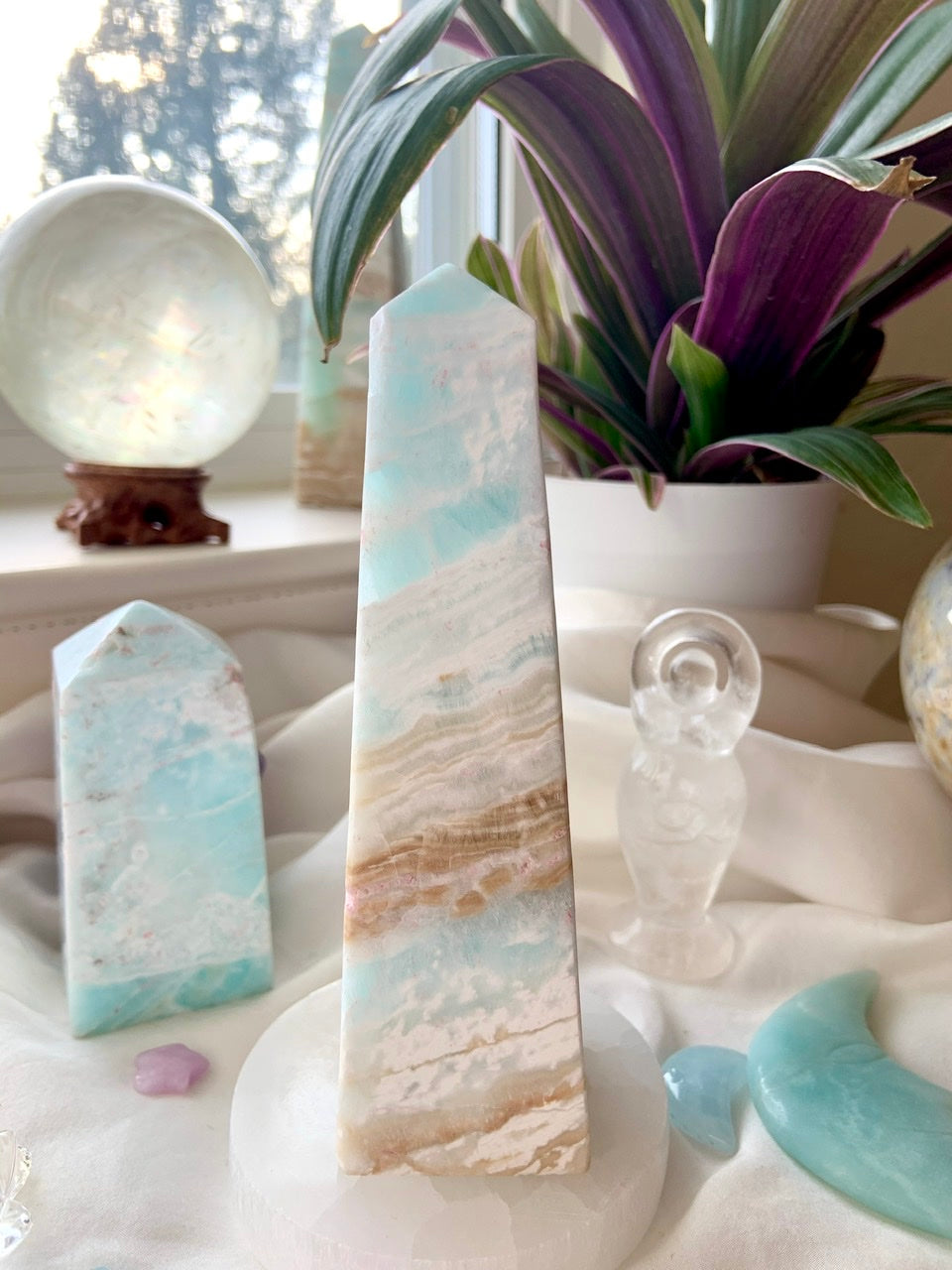 Opaline Shores Caribbean Calcite Tower, Blue Aragonite Tower