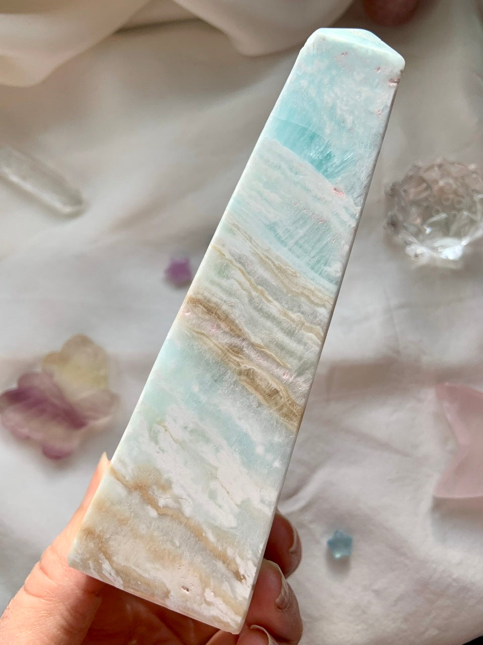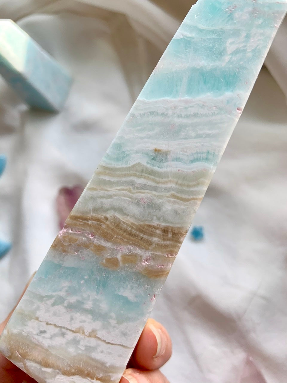 Caribbean Calcite soothes + opens the throat so that you can clearly express deeper feelings + emotions from your heart.