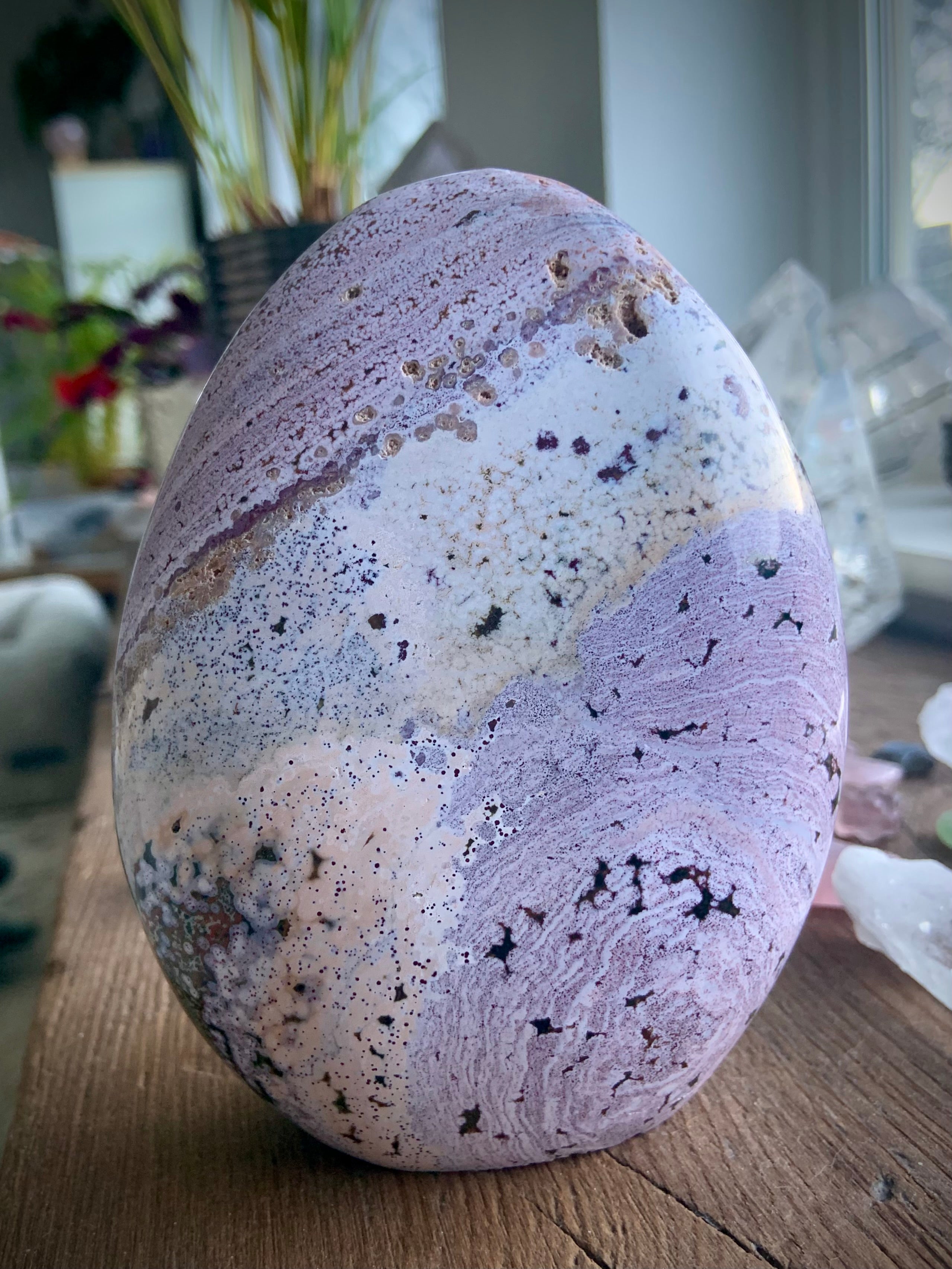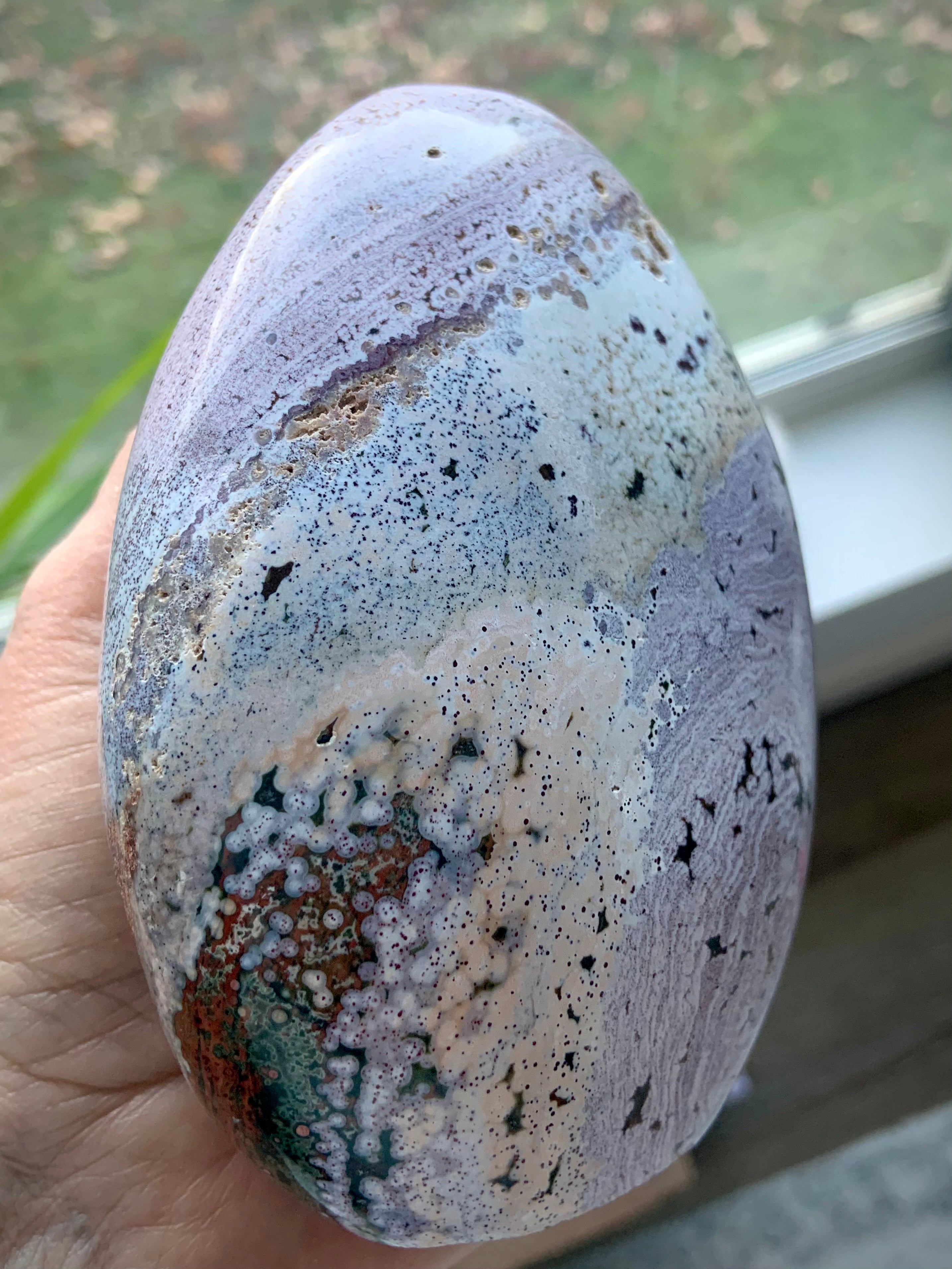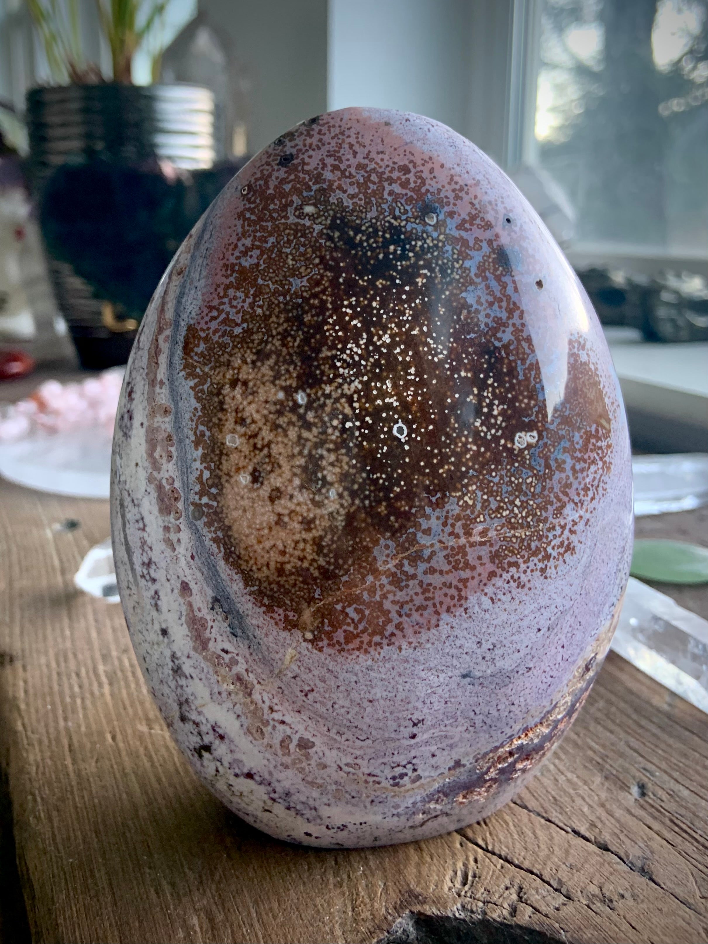 This very special piece of Ocean Jasper will make a prominent addition to your crystal display, radiating a soothing, gentle, heart-expanding energy.
