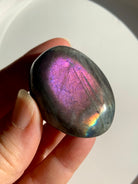 These rare purple + pink, flashy labradorite palm stones are a powerful tool in your crystal healing toolkit to bolster your intuition in alignment with your highest path. Hold your Labradorite palm stone in meditation to activate the Third Eye ~ allowing you to see the past more clearly + envision potential future timelines.