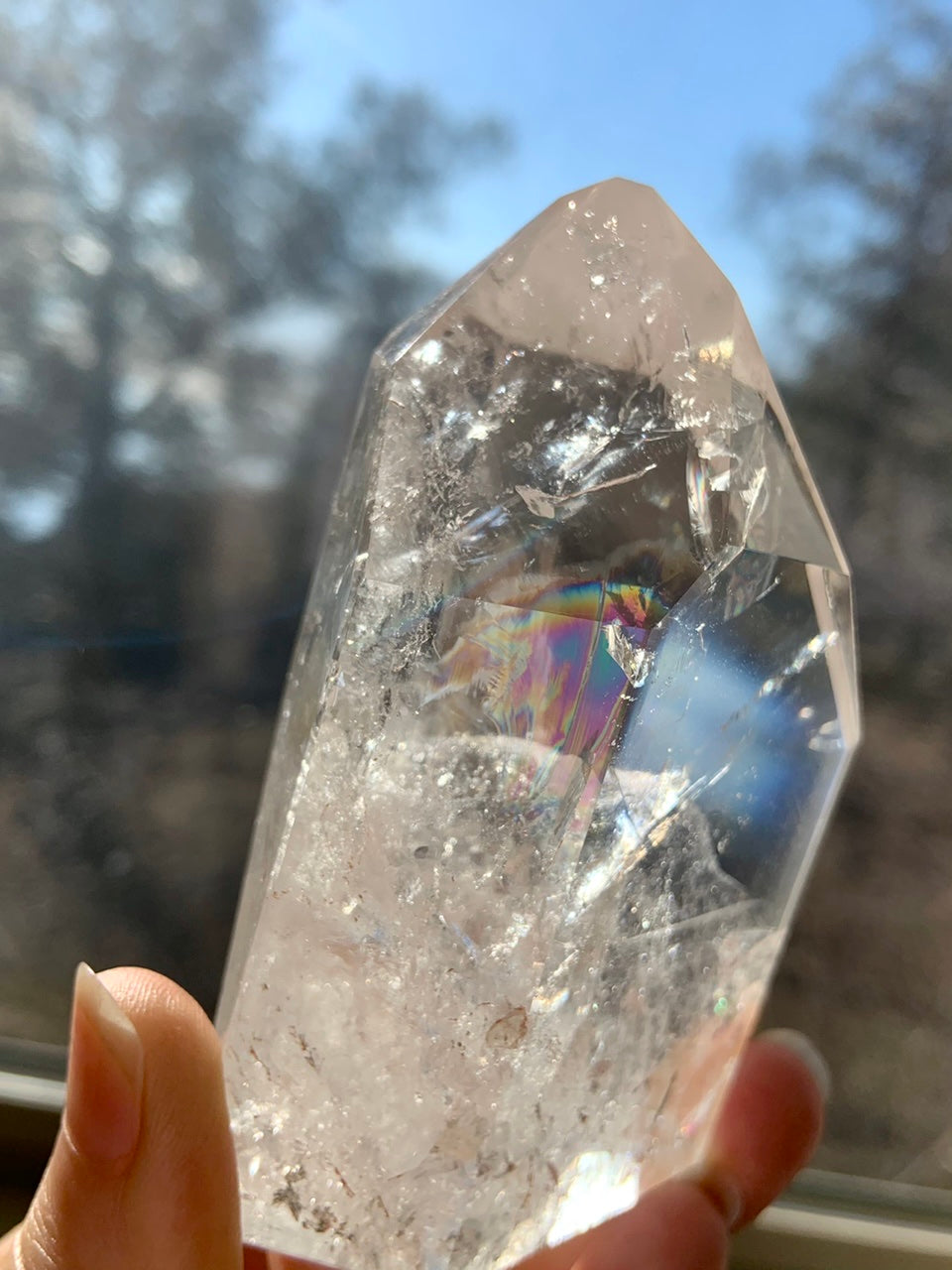 If you get the light + angle just right it looks like the entire crystal is filled with a rainbow!