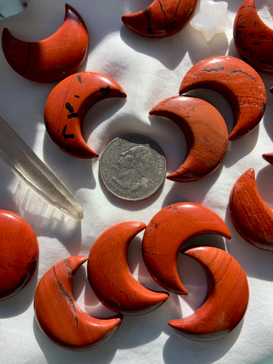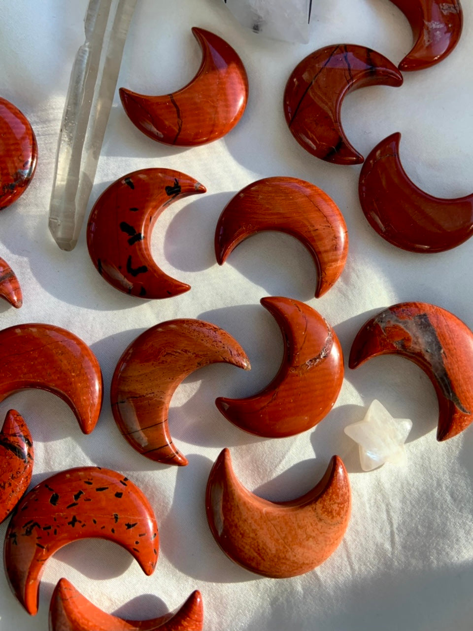 These stunning Red Jasper moons will be a treasured addition to your crystal collection. Use these crystal moons in your crystal grids, crystal craft projects, jewelry making, wire-wrapping, moon rituals, or just floating in your jewelry box.