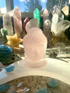 This soft pink Rose Quartz is lovingly carved in the image of the Buddha. This sweet crystalline Buddha Figurine glows, bringing a nurturing, peaceful energy to your space, sweetly emanating divine loving energy.