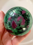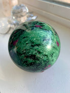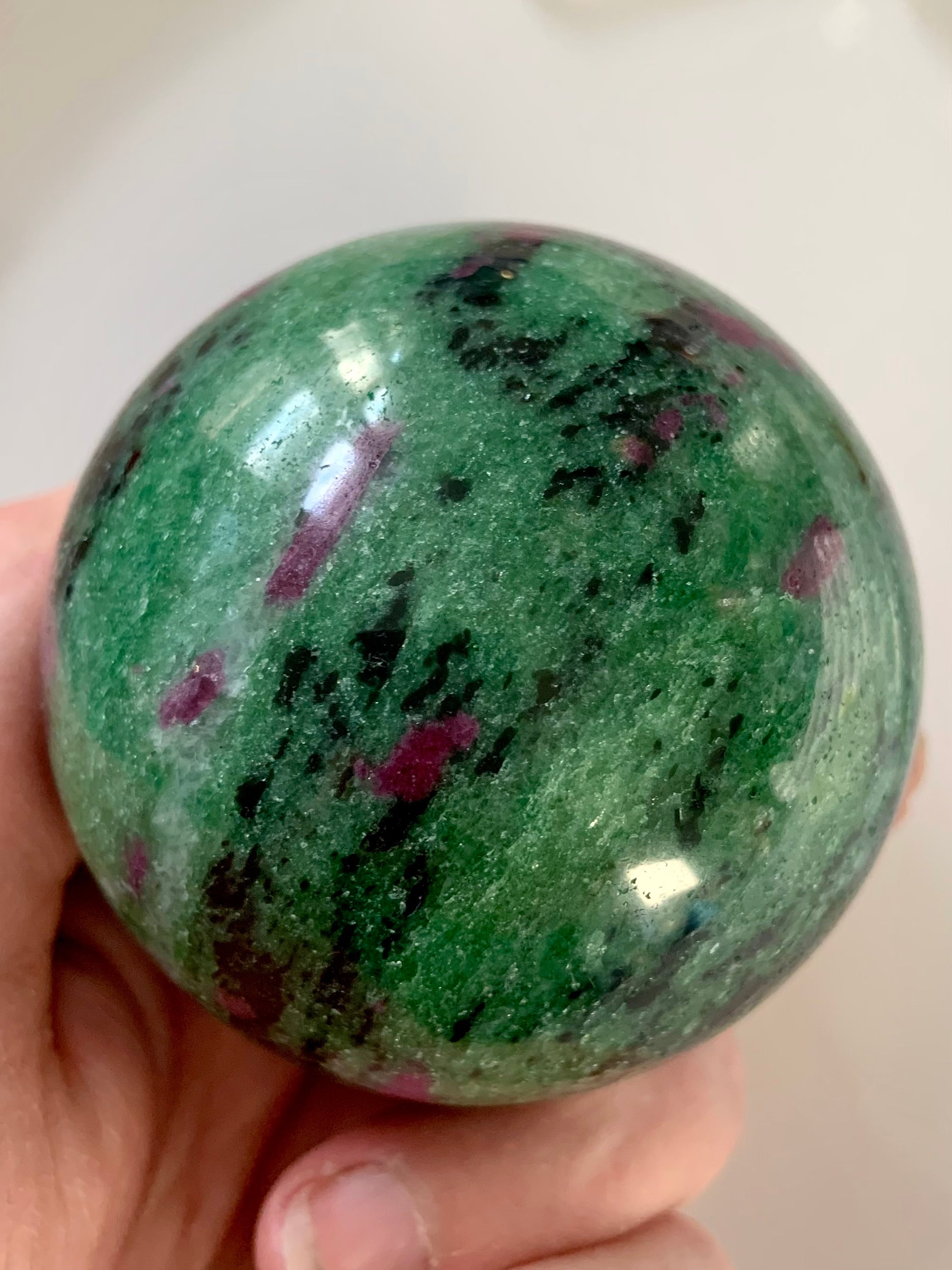 This high Quality Ruby in Zoisite sphere can help stabilize your energy while bringing healing, courage + strength.