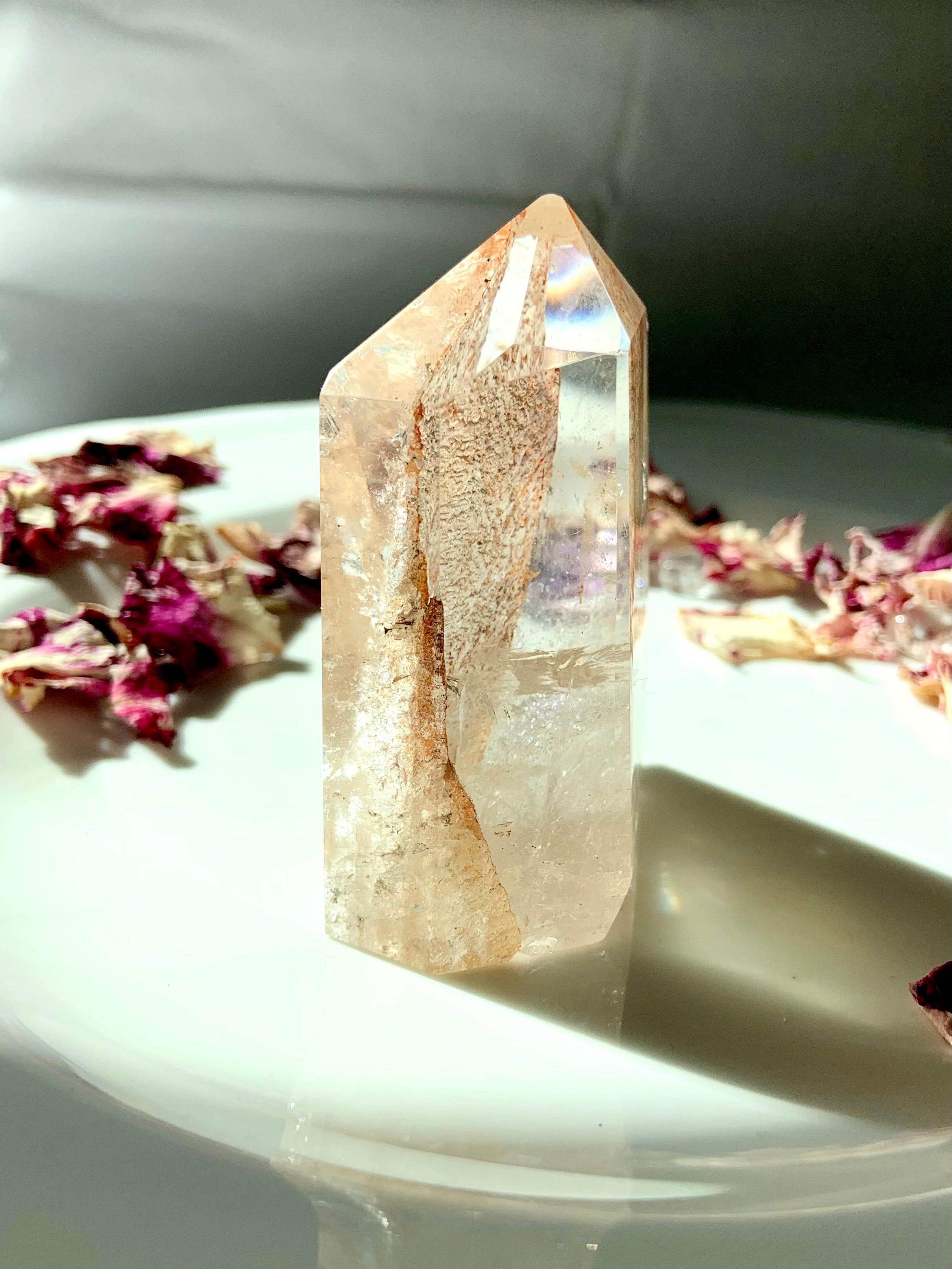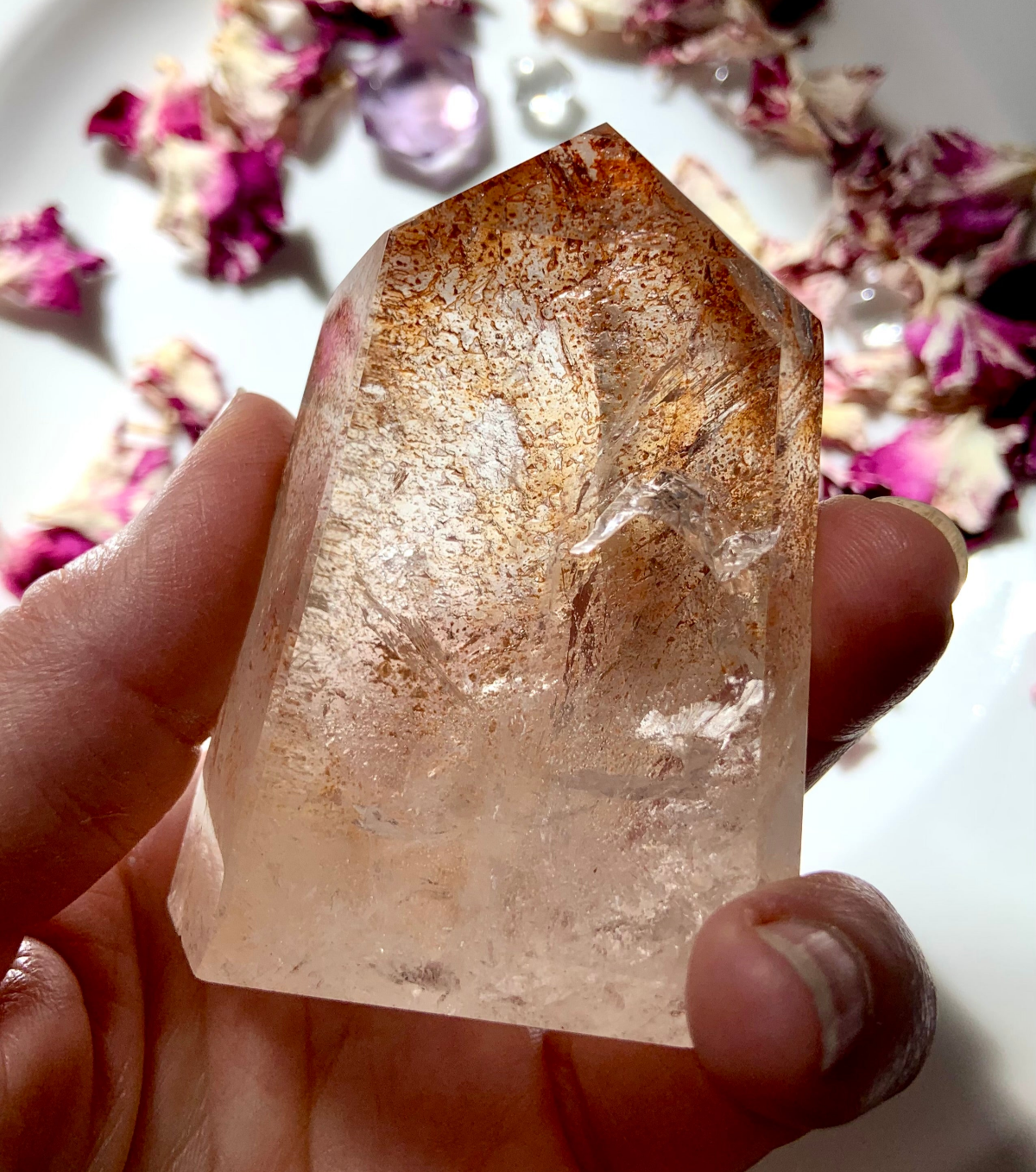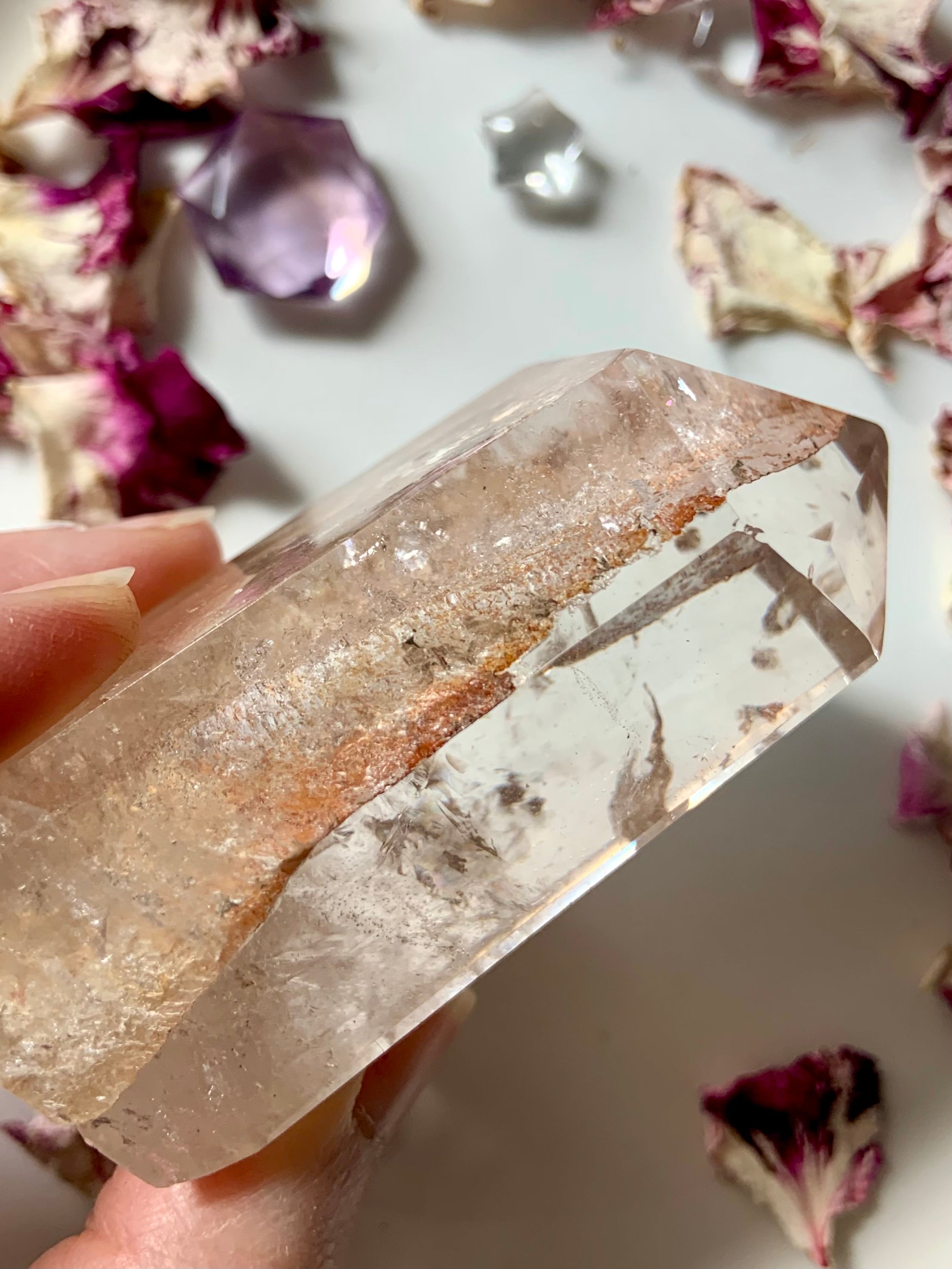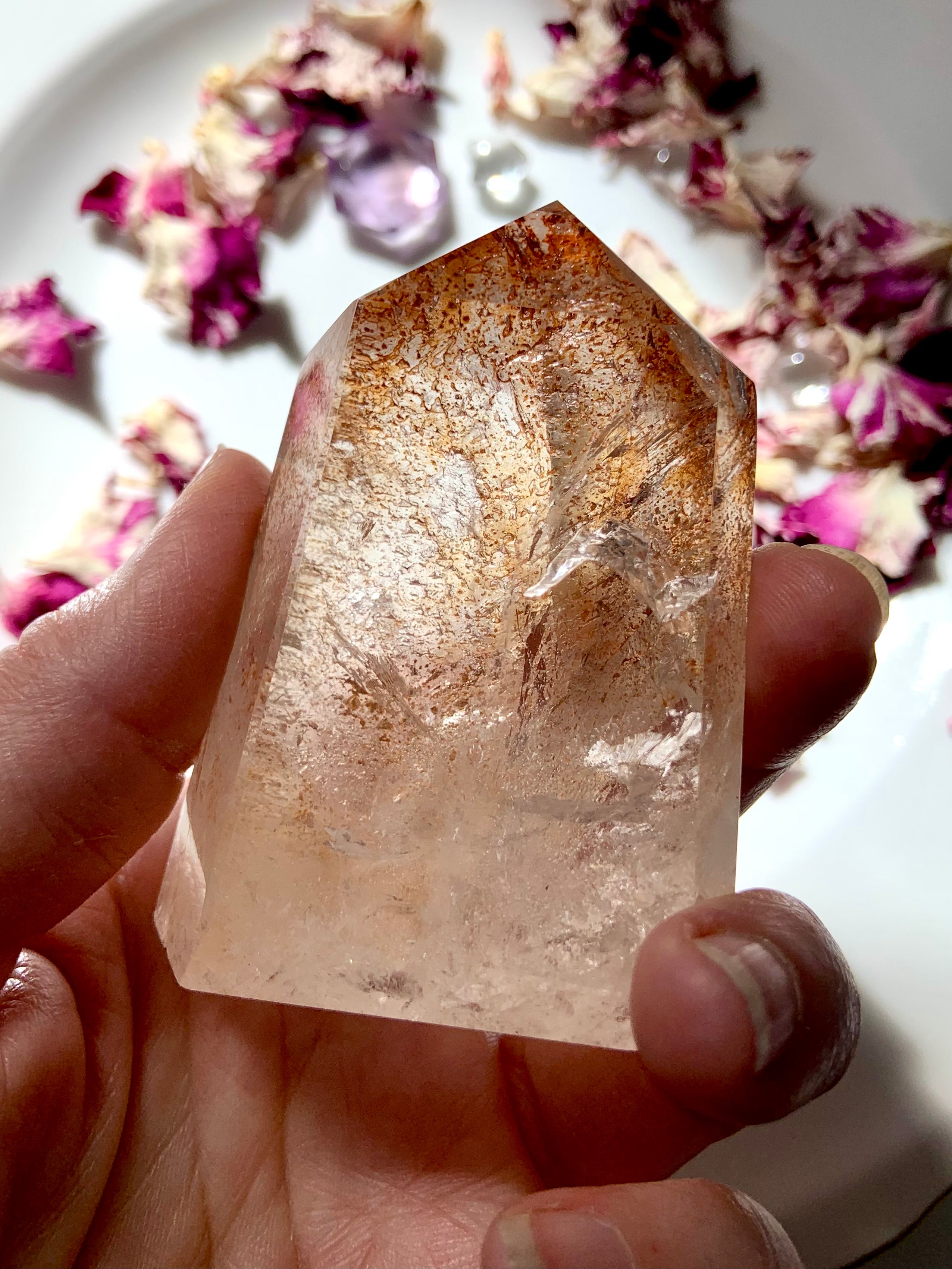 The sparkly hieroglyphs or circuit boards running through the crystal can awaken your akashic wisdom + dormant DNA. This stunning Hematoid Quartz Crystal is a powerful metaphysical healing tool, a sacred ally for meditation + expanded consciousness.