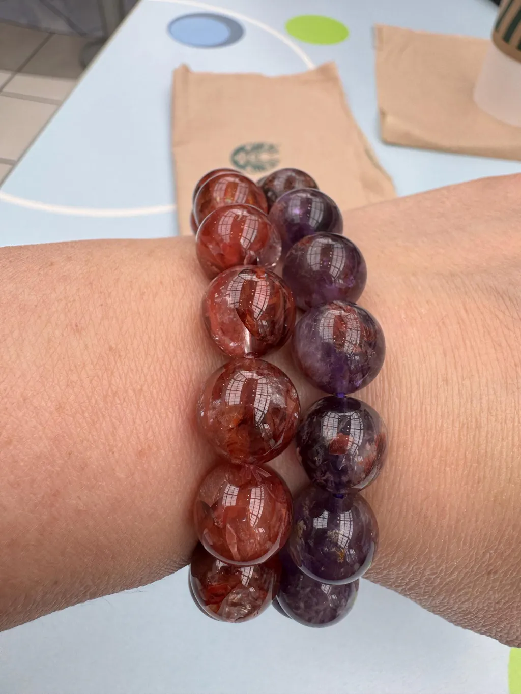 Each bracelet is custom made to order using the natural gemstone beads shown — every piece unique in tone, pattern, and mineral character.