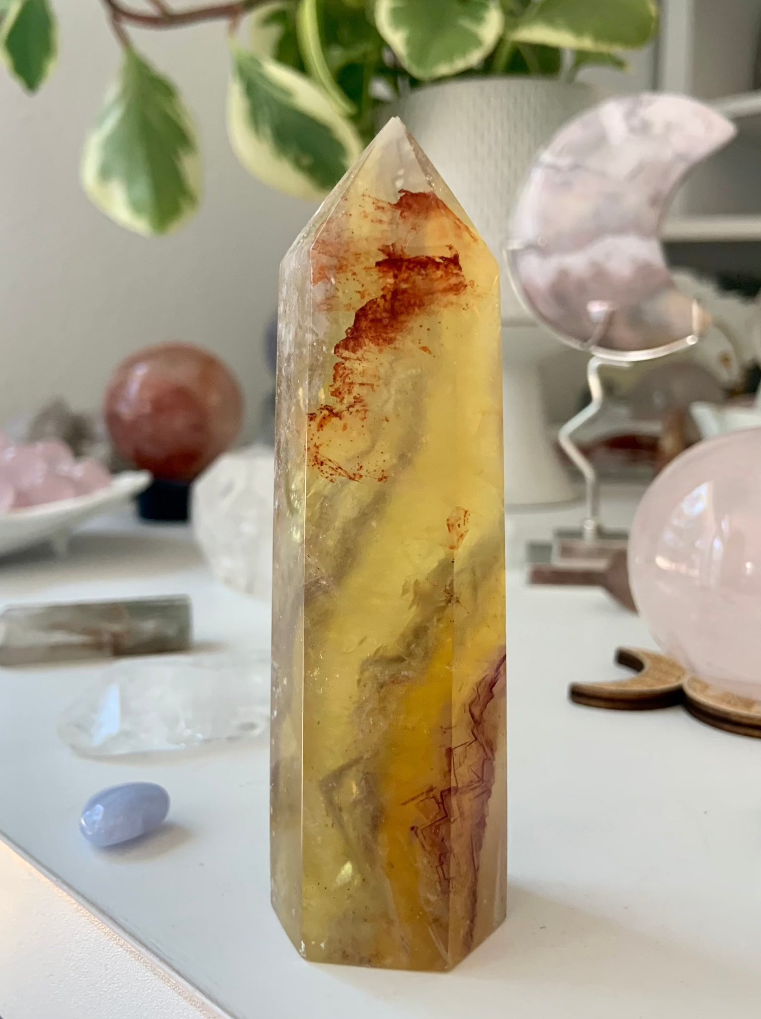 Natural stones may have inherent marks, mineral inclusion, or slight imperfections. Weights + measures are approximate. You will receive the exact crystal tower that you see in the pictures.