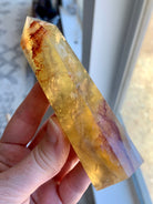 Yellow Fluorite has a joyful energy that bringing a sense of vitality + an optimistic outlook on life. Yellow Fluorite resonates with the solar plexus + can boost creativity + your sense of self-confidence. Fluorite with mica inclusions brings an element of reflection into your personal + spiritual growth.