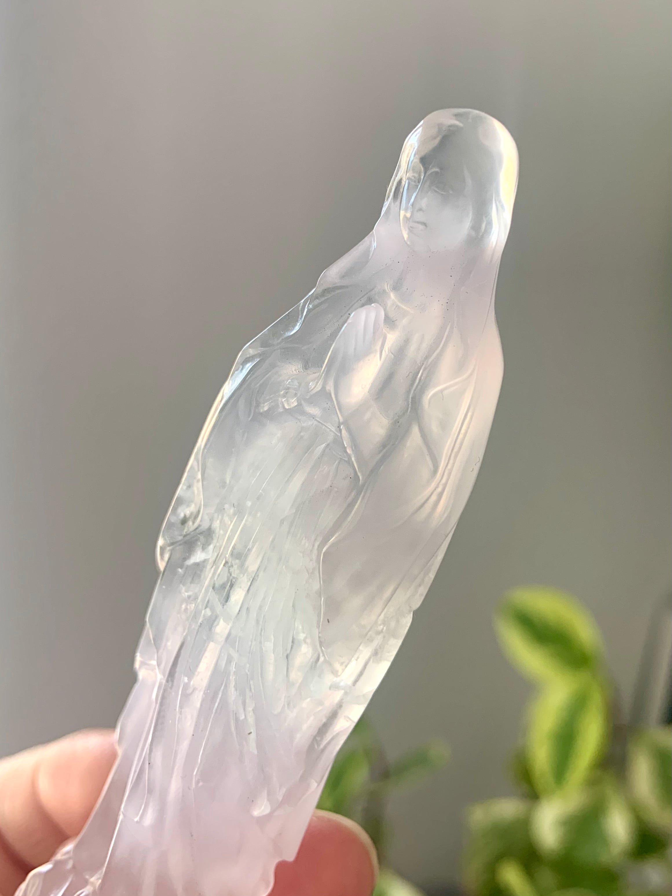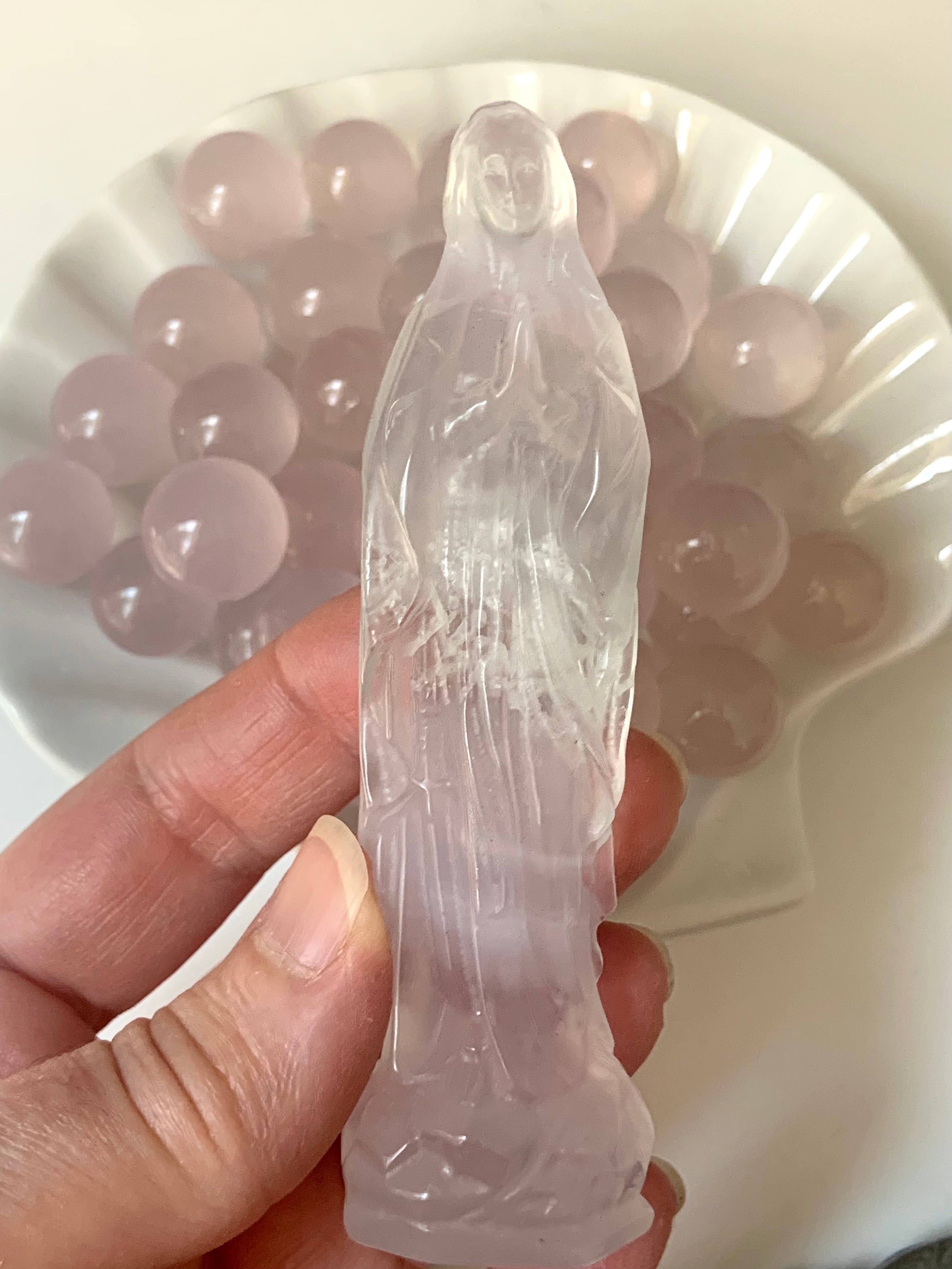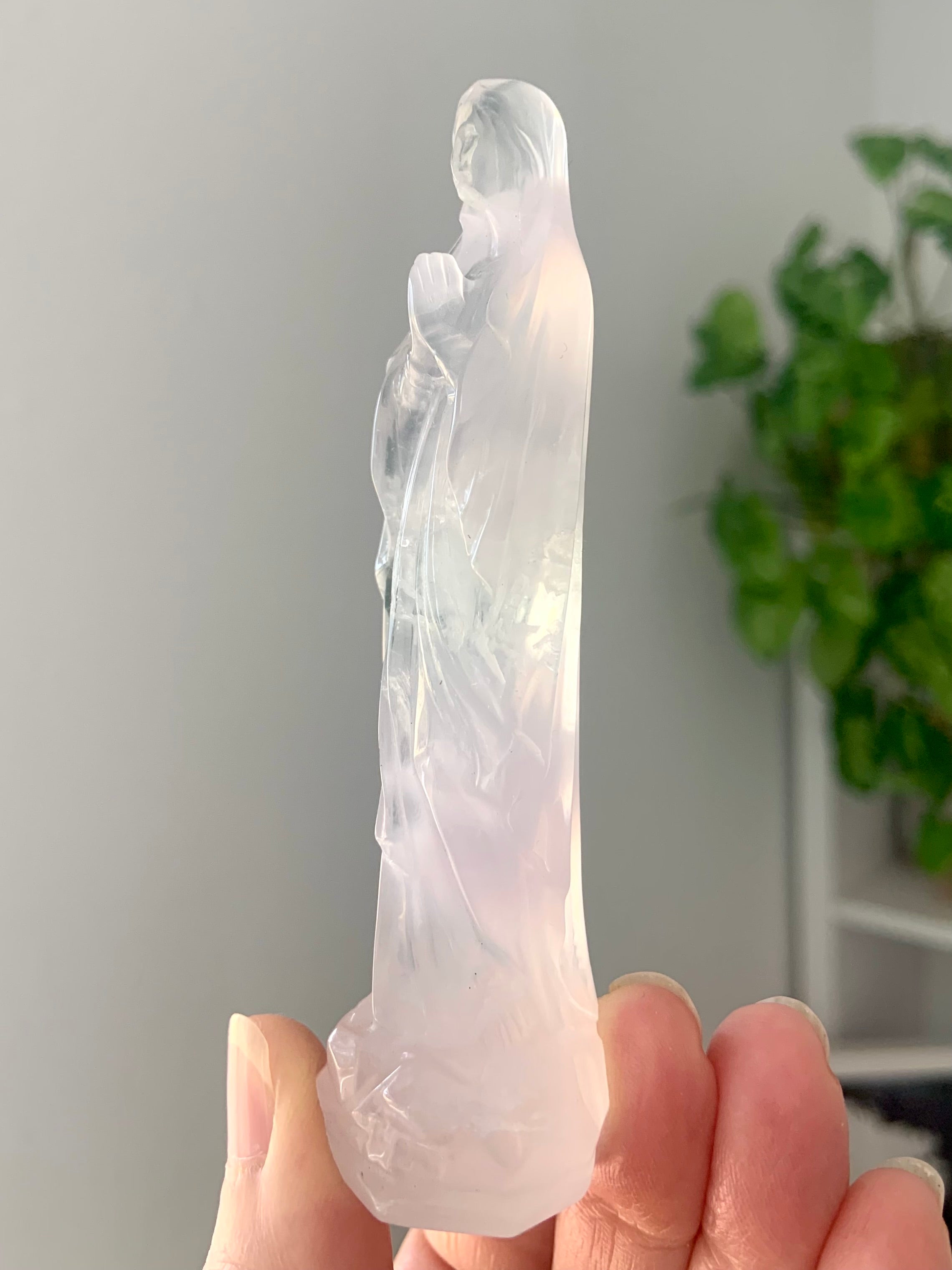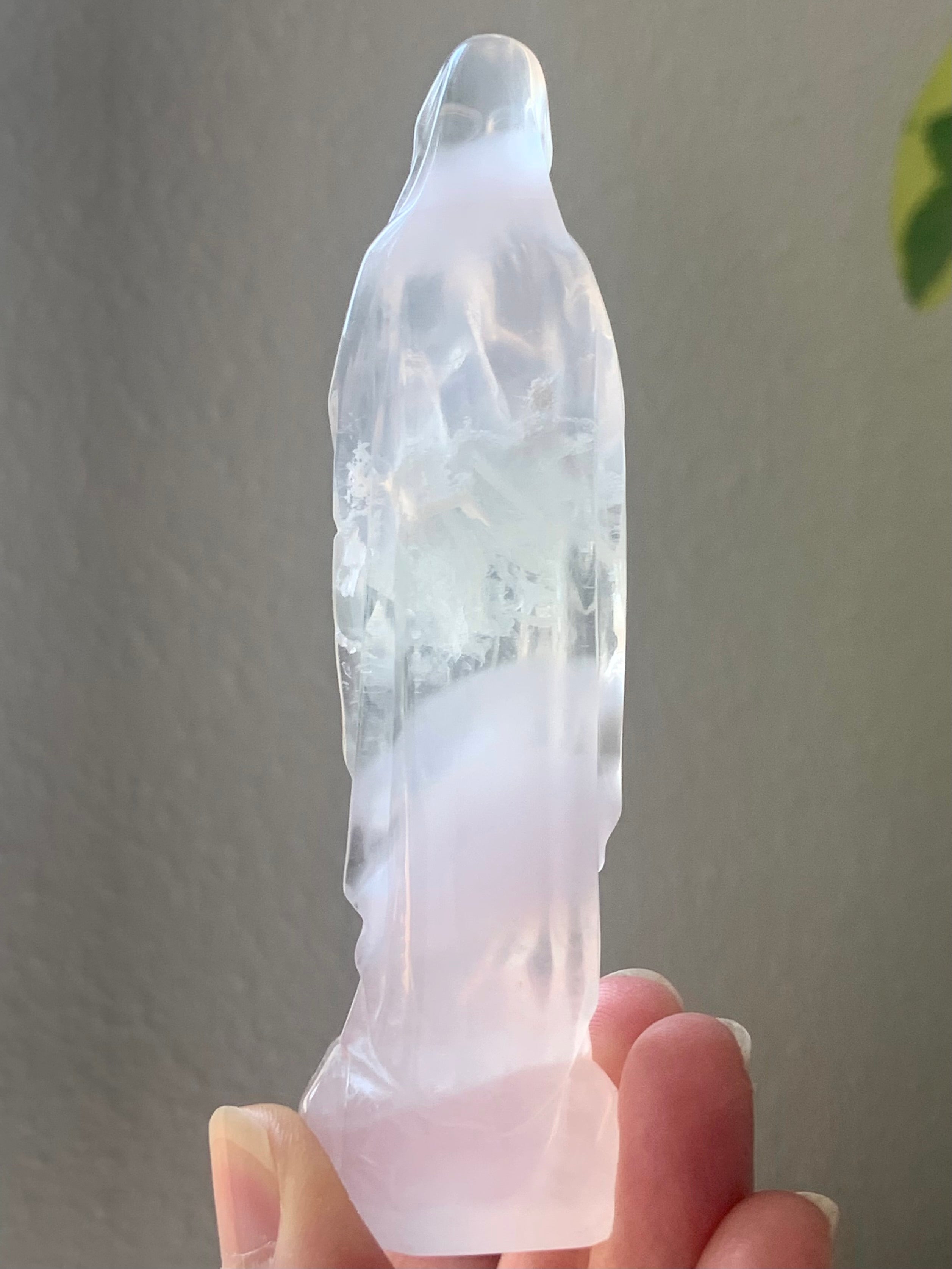 Use this special figurine to commune with Mother Mary. Mother Mary can offer guidance + protection on your deeper healing work, when you call in your angels, spirit guides, and/or come into alignment with your Highest Truth. Allow this Divine Mother figurine to serve as your shining light, to illuminate the destiny of your Divine Calling. Meditate with it, infuse it with your love + program it's crystalline structure as your protector, a symbol of divine guidance for your highest good + the highest good of all. If you're gifting this beauty you can program it with this method for another person as well.