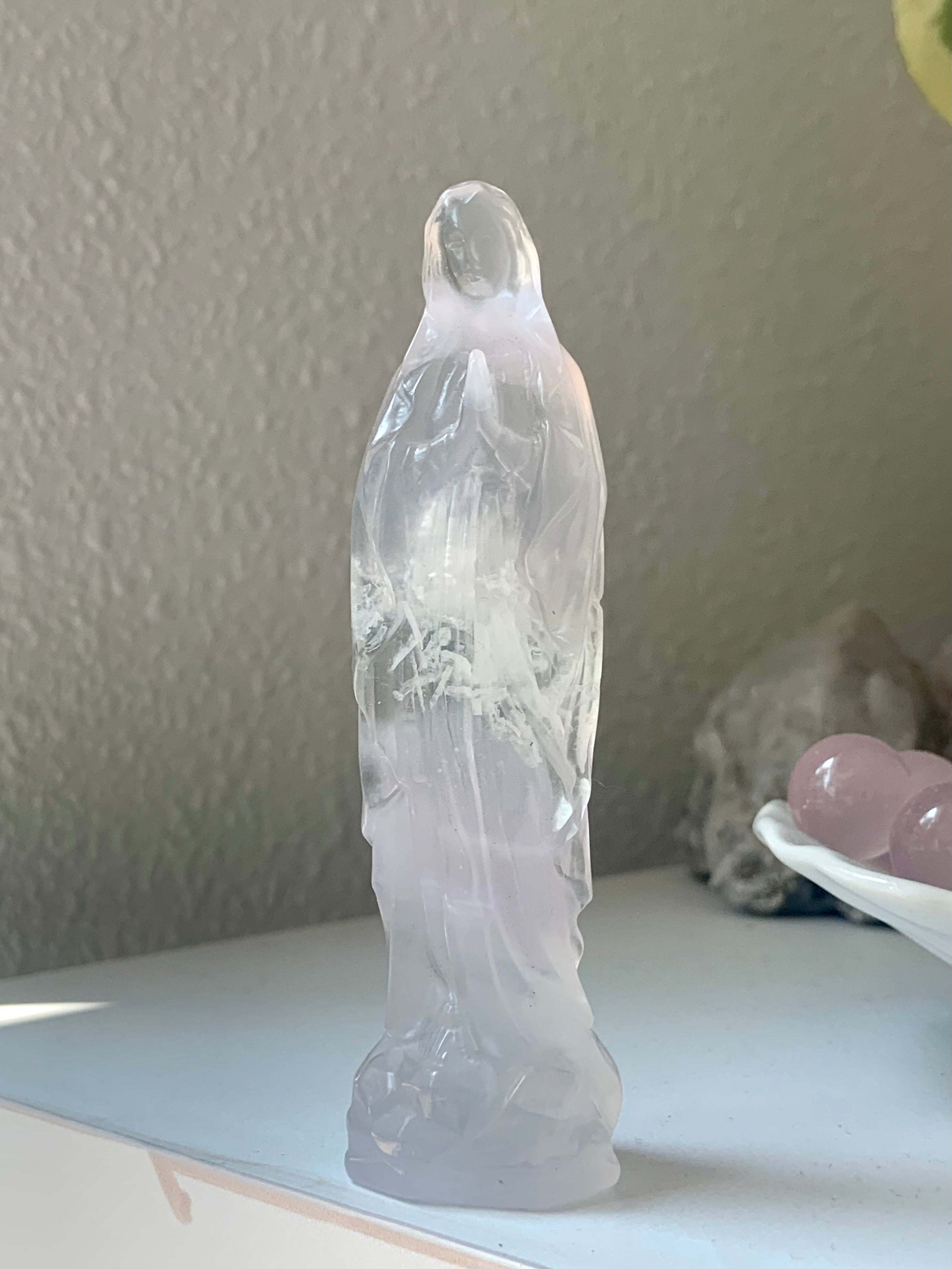 Lavender Fluorite Mother Mary Figurine with Scolecite Inclusions