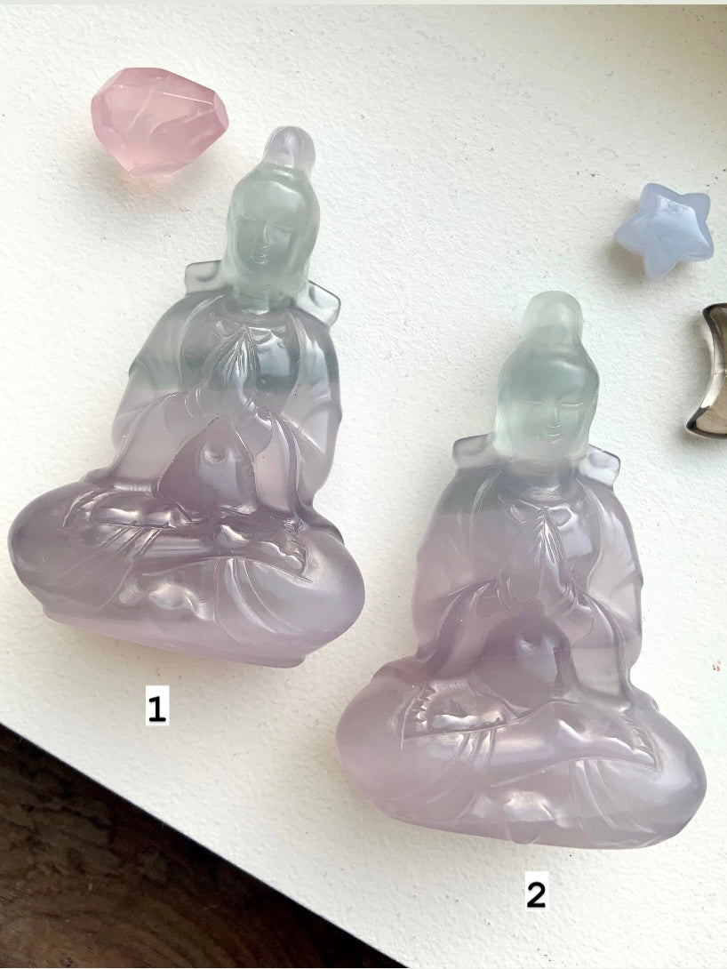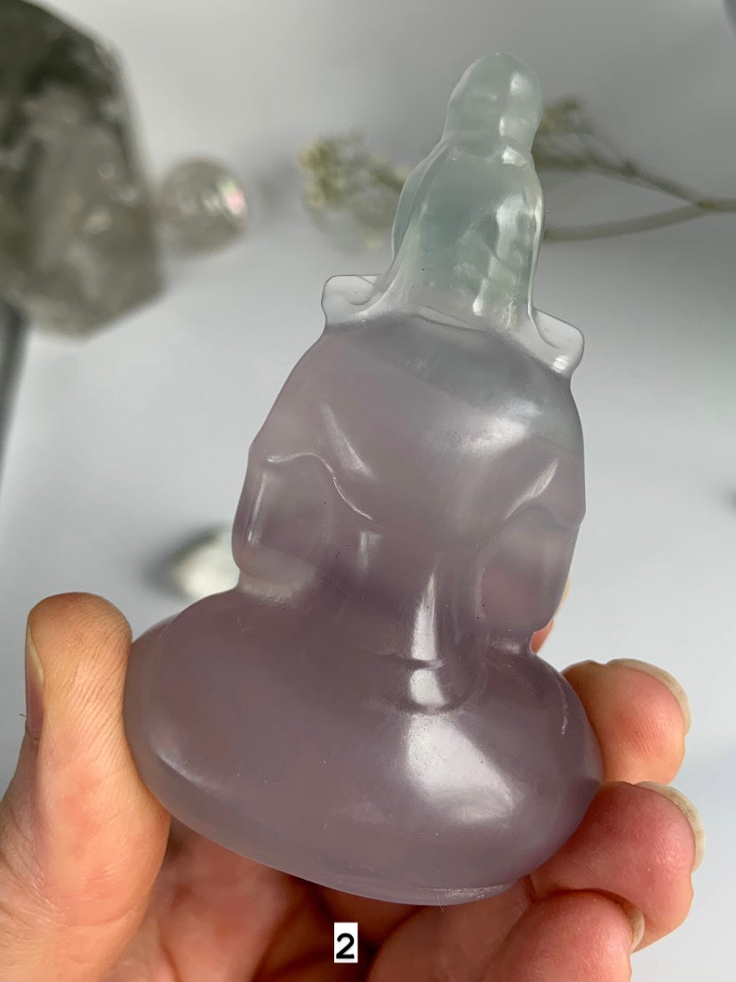 Luminous Fluorite Quan Yin Carvings